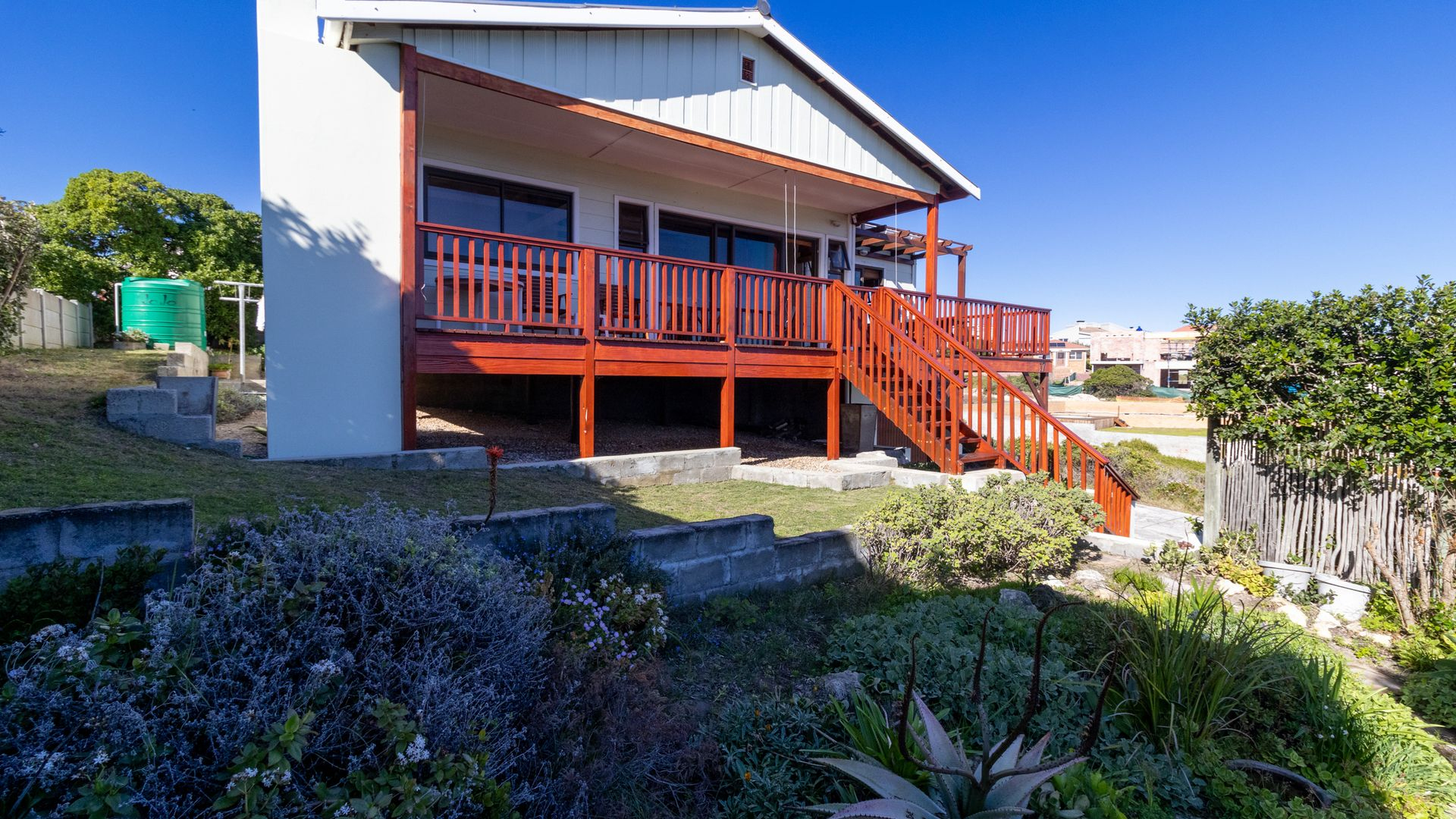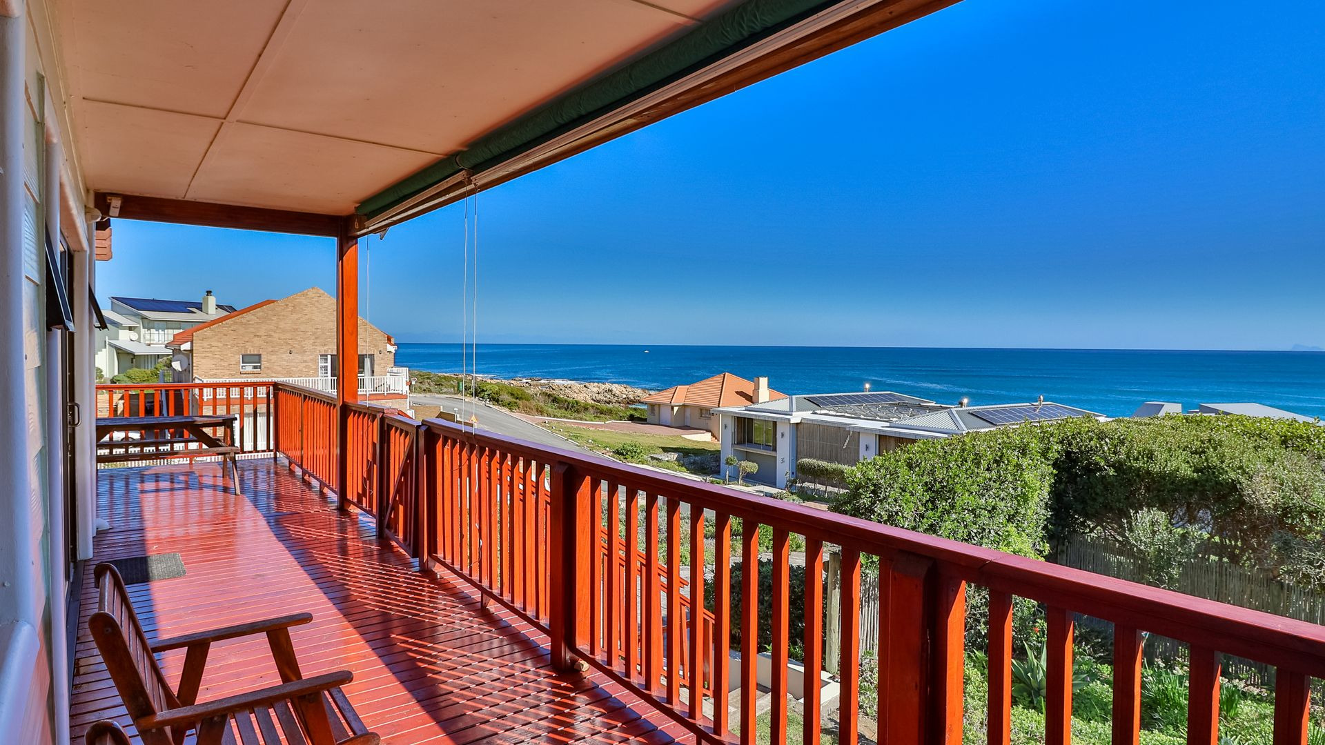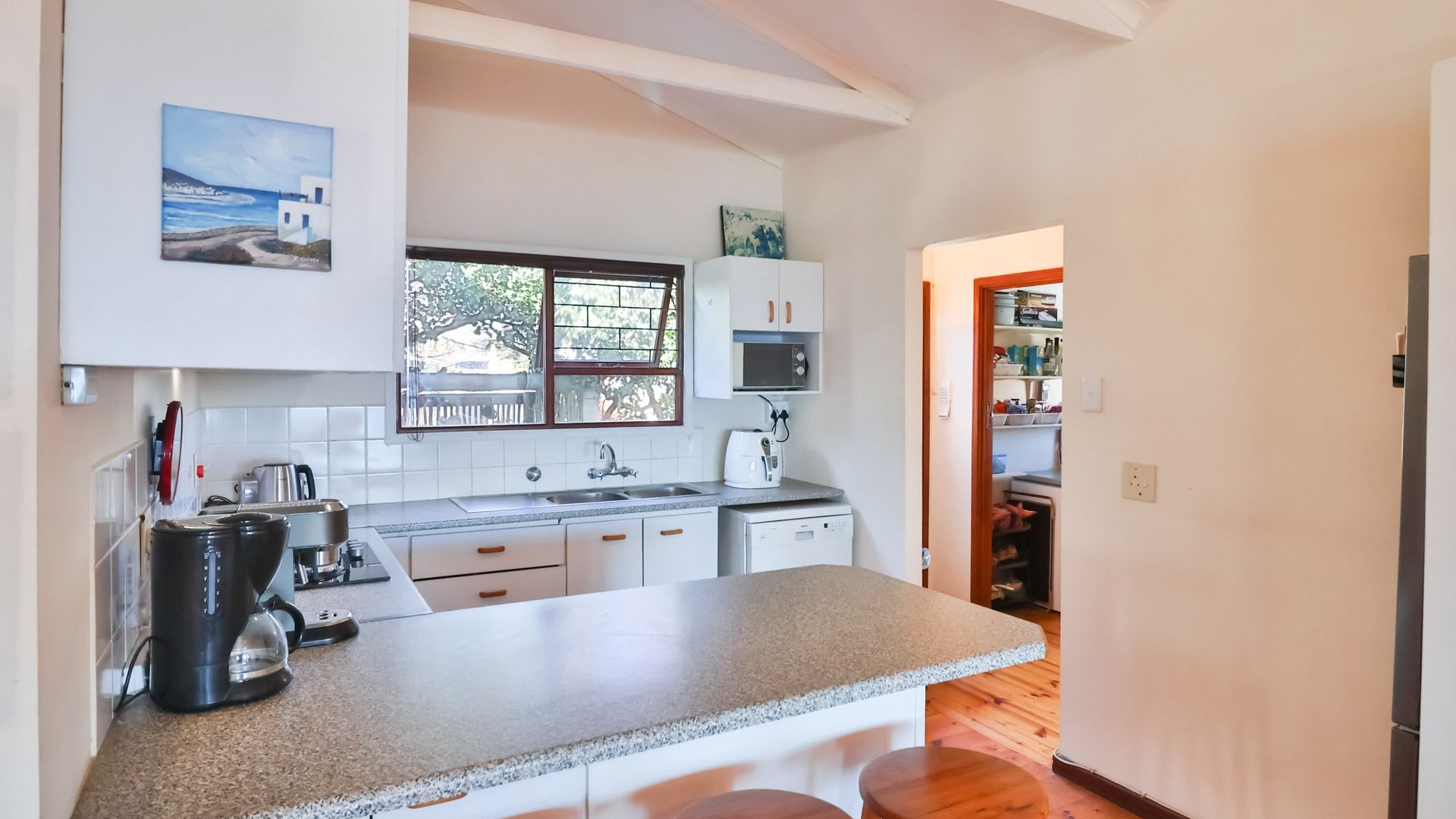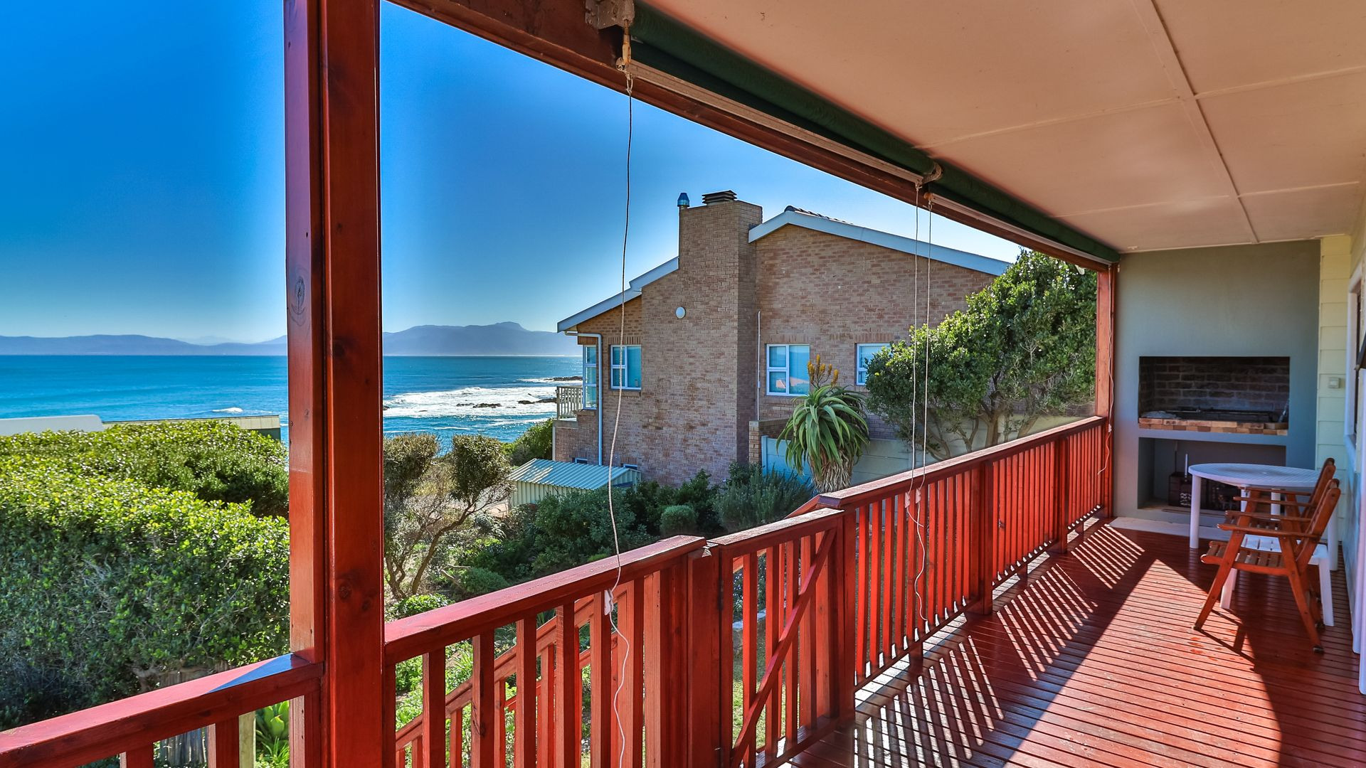 From the wooden deck, you are welcomed into the living area which, in addition to celebrating the light and sight of the sea, features a close-combustion fireplace and ample space for indoor gatherings around the table. A modern, open-plan kitchen (with adjoining pantry) opens out to the garden, which includes a Wendy house and a shaded courtyard for outdoor entertaining. Sharing the balcony, the master bedroom offers an en-suite bathroom, while a second full bathroom is shared by two more charmingly styled bedrooms. Completing the interior is a home office (perfect for a home-schooler or work-from-home family member). There is so much to love about this home, but get in touch today and discover it for yourself.