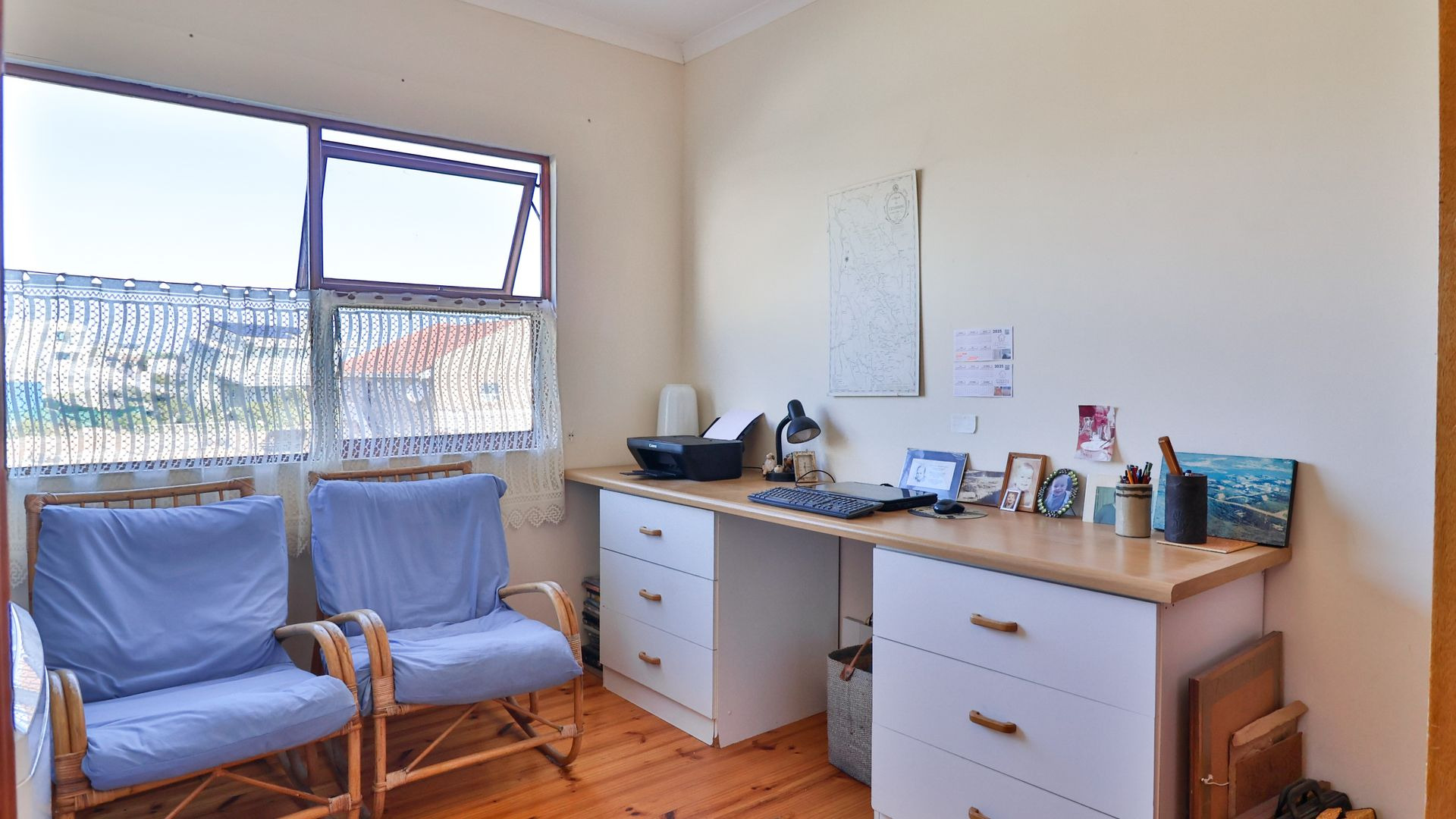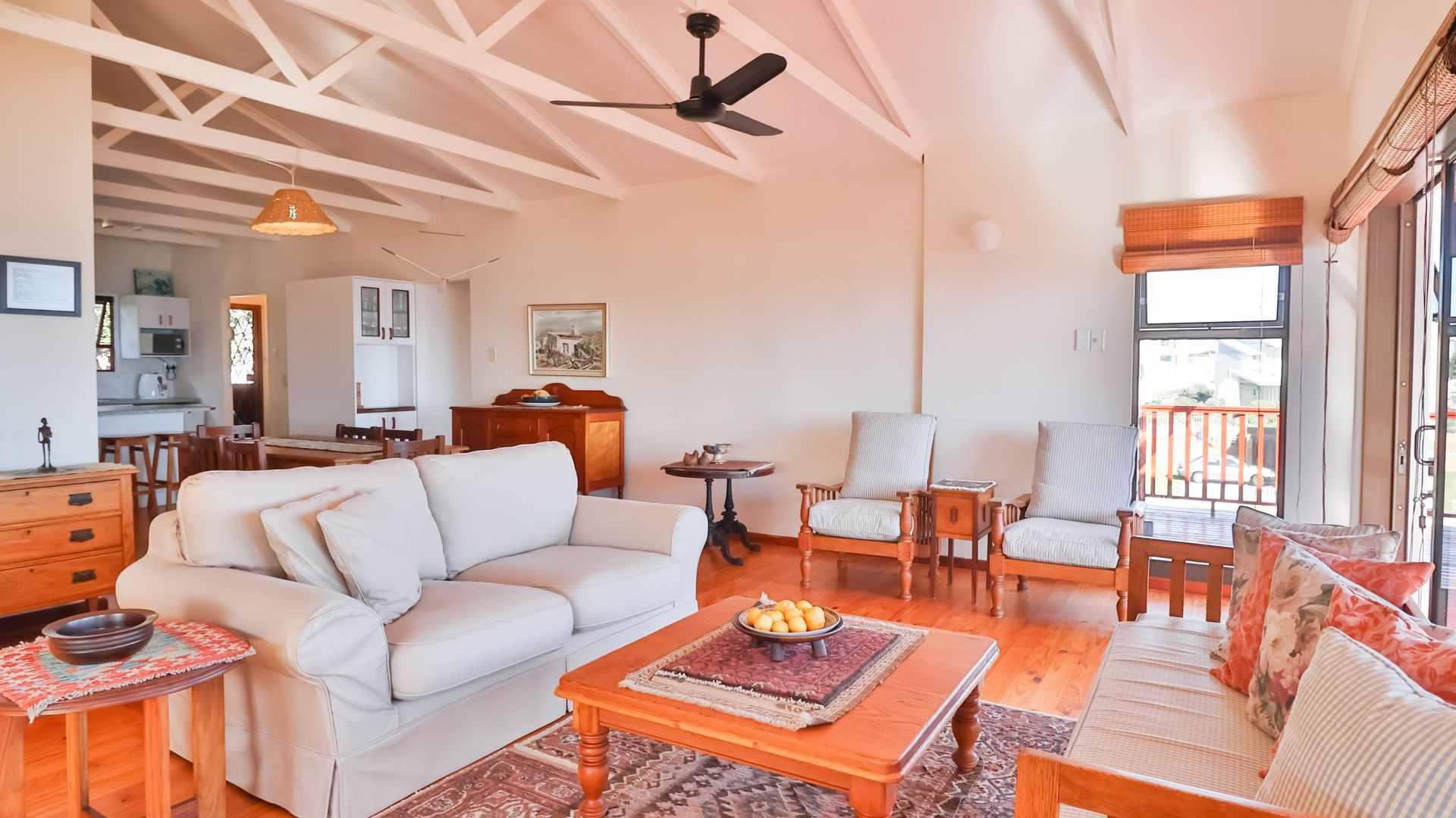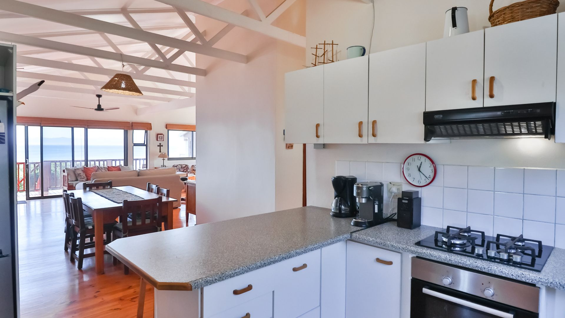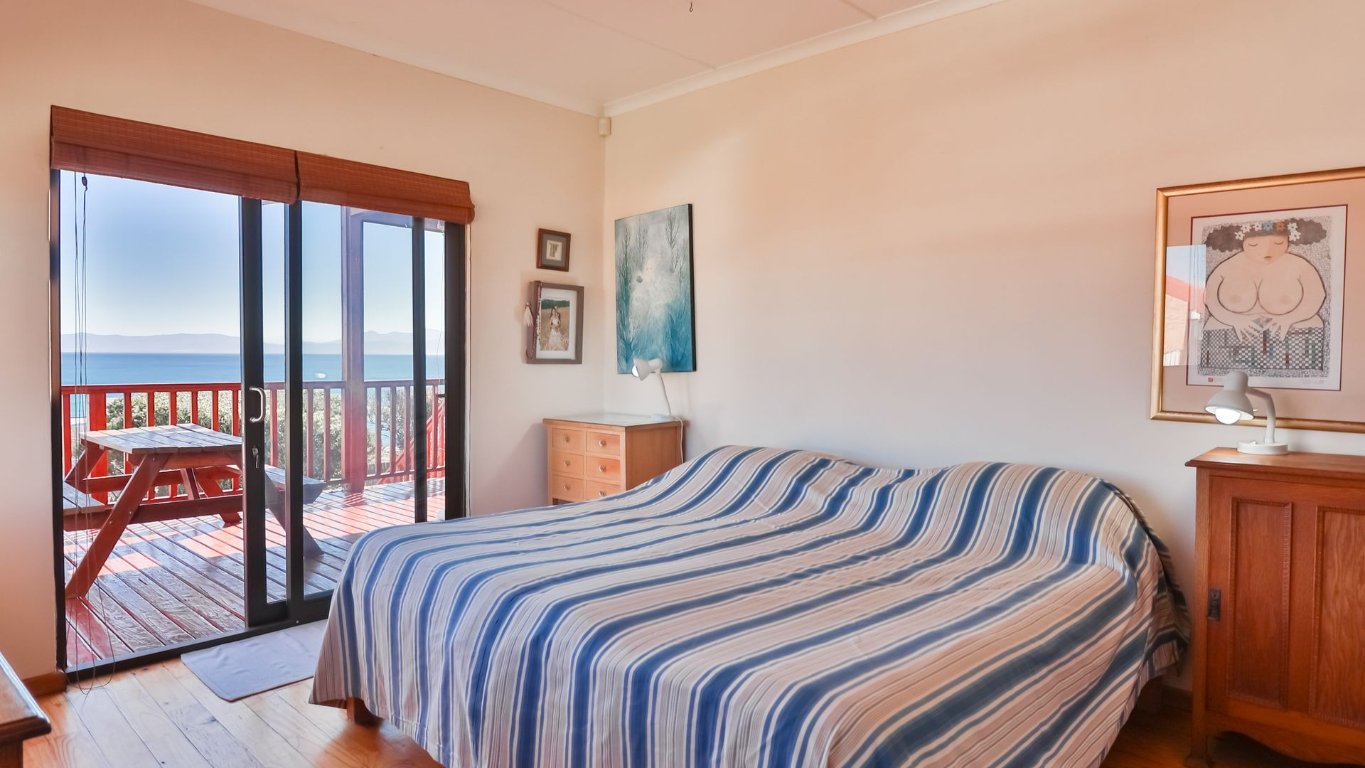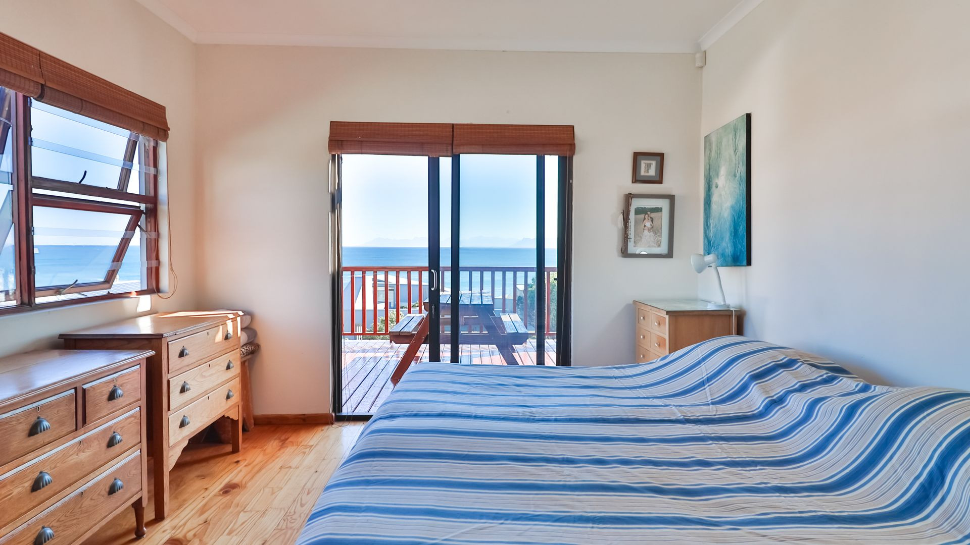 From the wooden deck, you are welcomed into the living area which, in addition to celebrating the light and sight of the sea, features a close-combustion fireplace and ample space for indoor gatherings around the table. A modern, open-plan kitchen (with adjoining pantry) opens out to the garden, which includes a Wendy house and a shaded courtyard for outdoor entertaining. Sharing the balcony, the master bedroom offers an en-suite bathroom, while a second full bathroom is shared by two more charmingly styled bedrooms. Completing the interior is a home office (perfect for a home-schooler or work-from-home family member). There is so much to love about this home, but get in touch today and discover it for yourself.