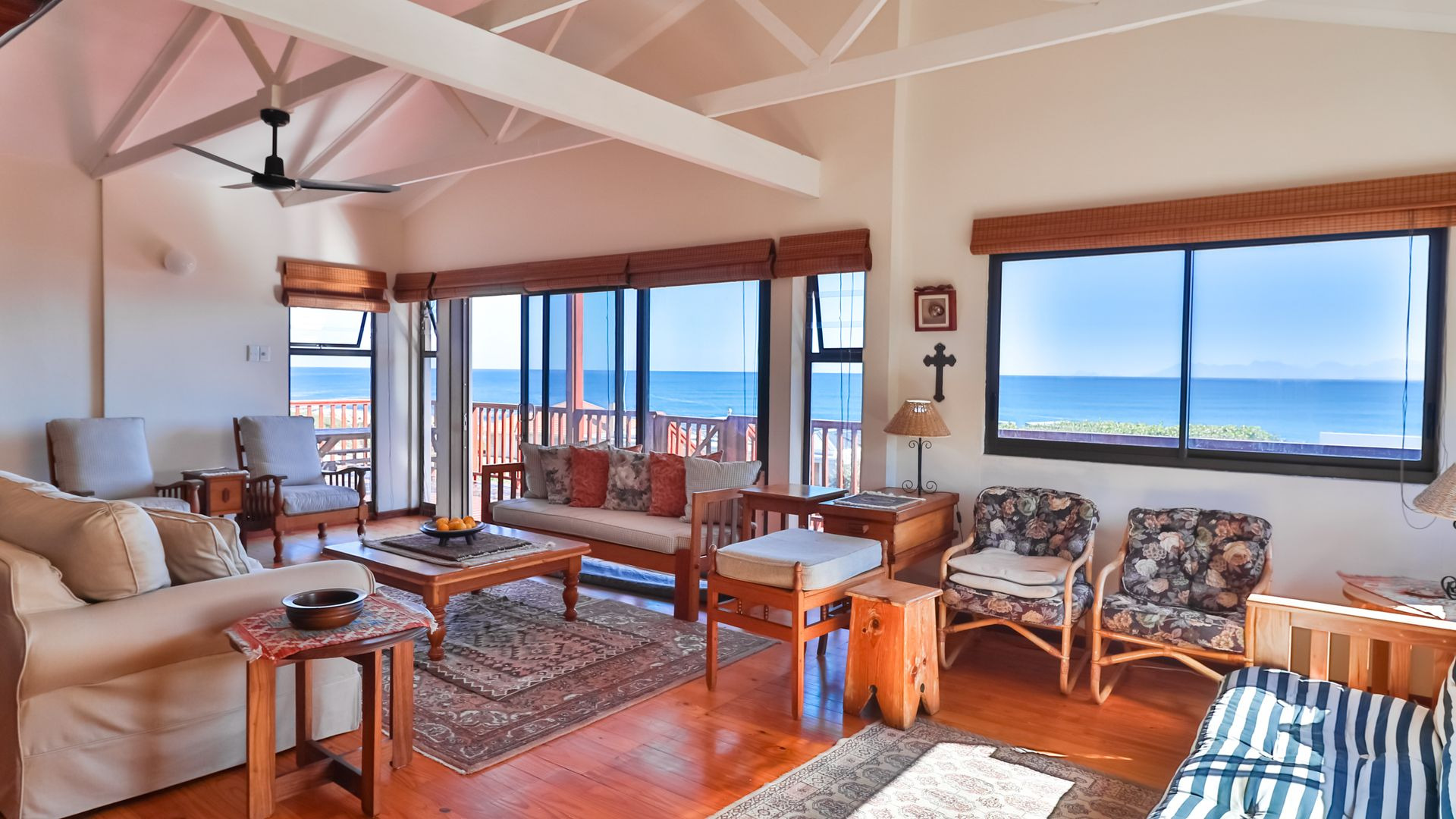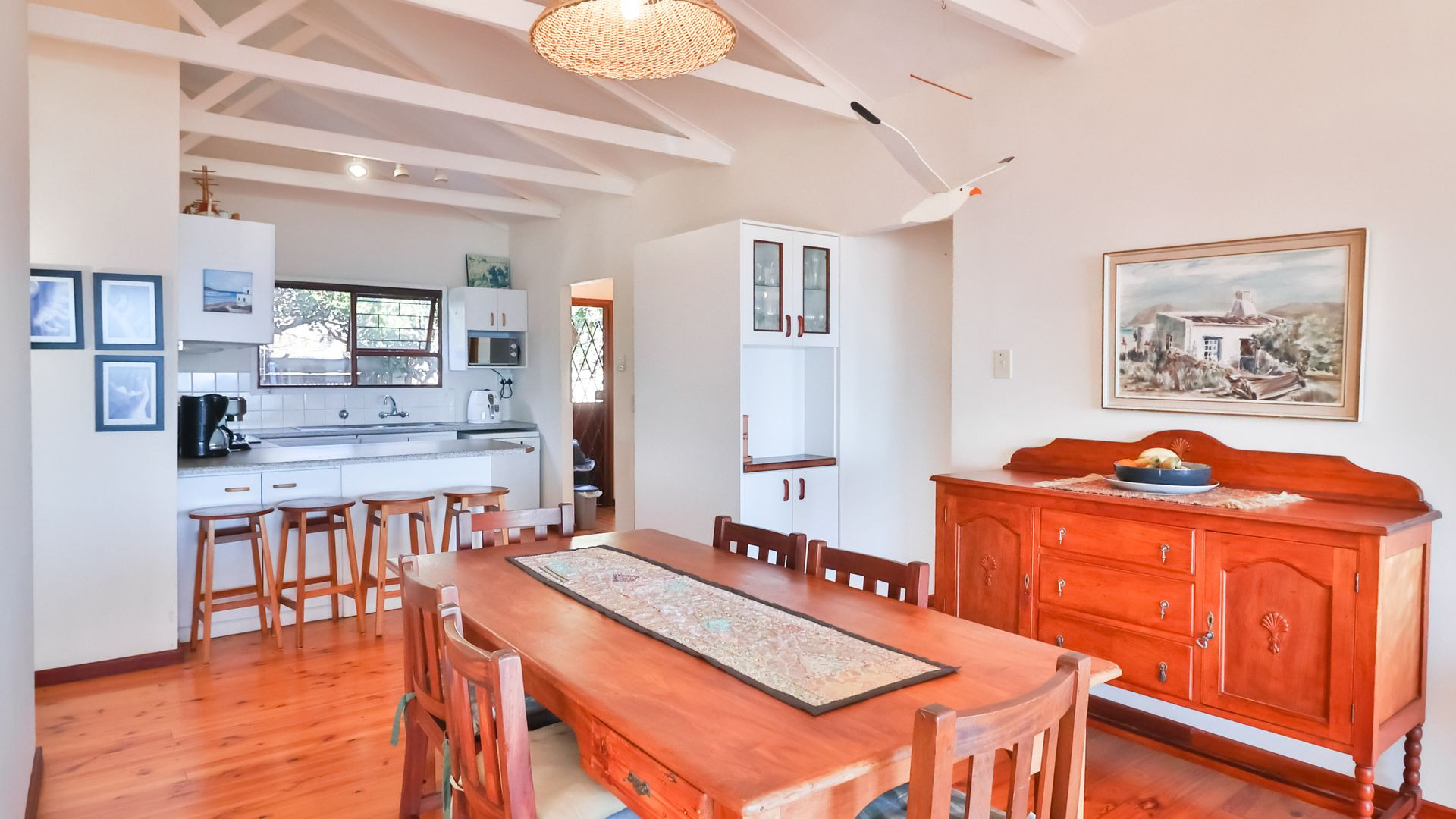 Overlooking the ocean, this highly desirable address in De Kelders was designed to maximise the impact of those breath-taking views. These are further enhanced by a skillful blend of modern and traditional design elements, showcasing warm wooden flooring, double-volume ceilings, natural textures, and old-world extras such as a dedicated pantry and linen store.