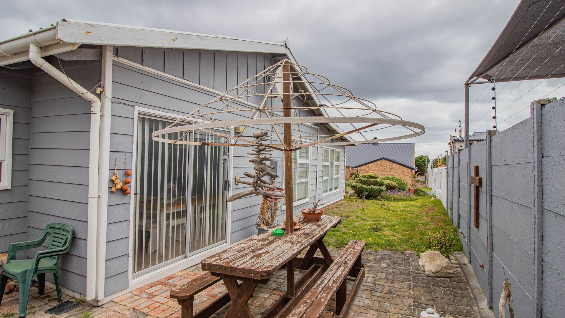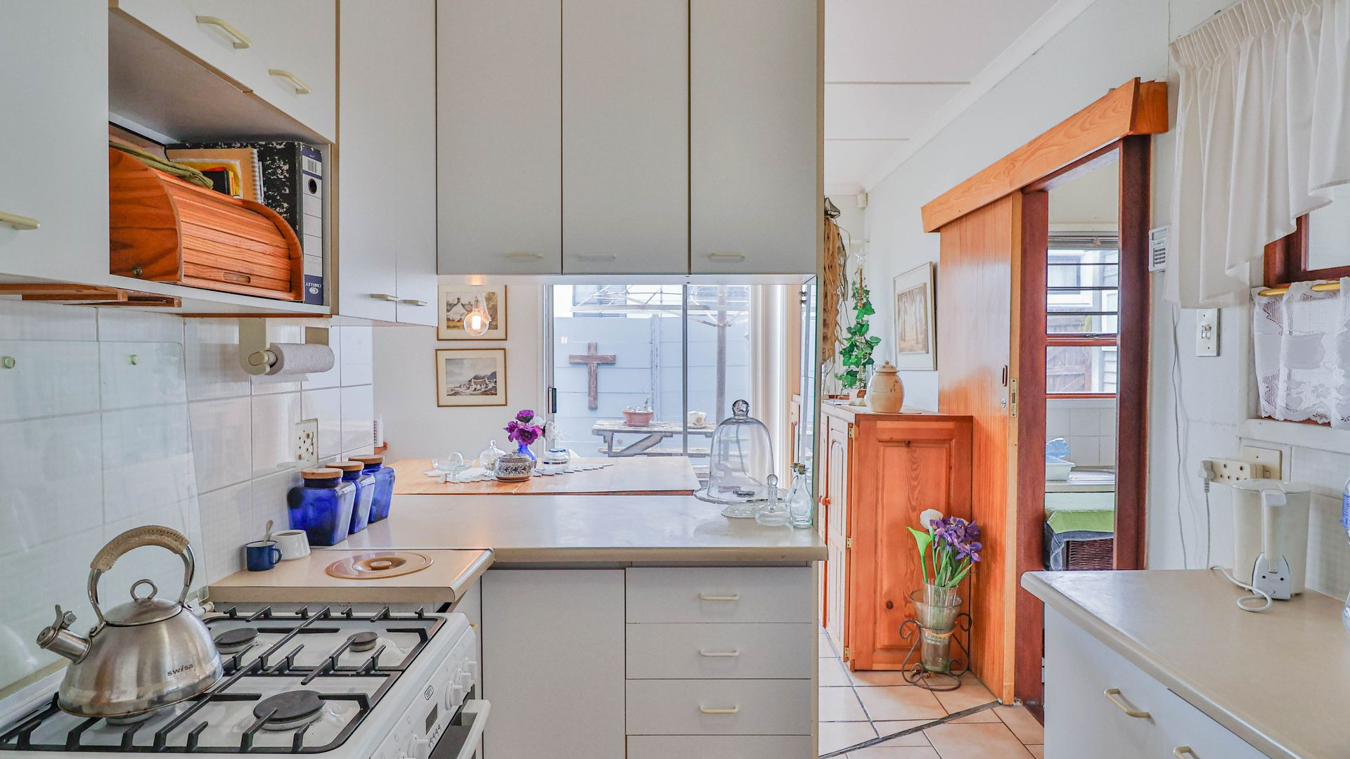 Entering via a cute half-moon patio (complete with broekie lace), the home opens into a spacious tiled living and dining area, which opens via sliding doors on to the al-fresco entertaining space, where you can look forward to long Summer evening meals spent around the table with friends ands family. Adjacent to the living area lies the fitted kitchen with adjoining scullery and a guest loo. Opening out into the back garden (which includes a Wendy house, staff ablution and garage), the braai room is where the Wintery months can be enjoyed. Three bedrooms and a shared family bathroom complete an interior, that while in need of some updates, is character-filled and uniquely charming.