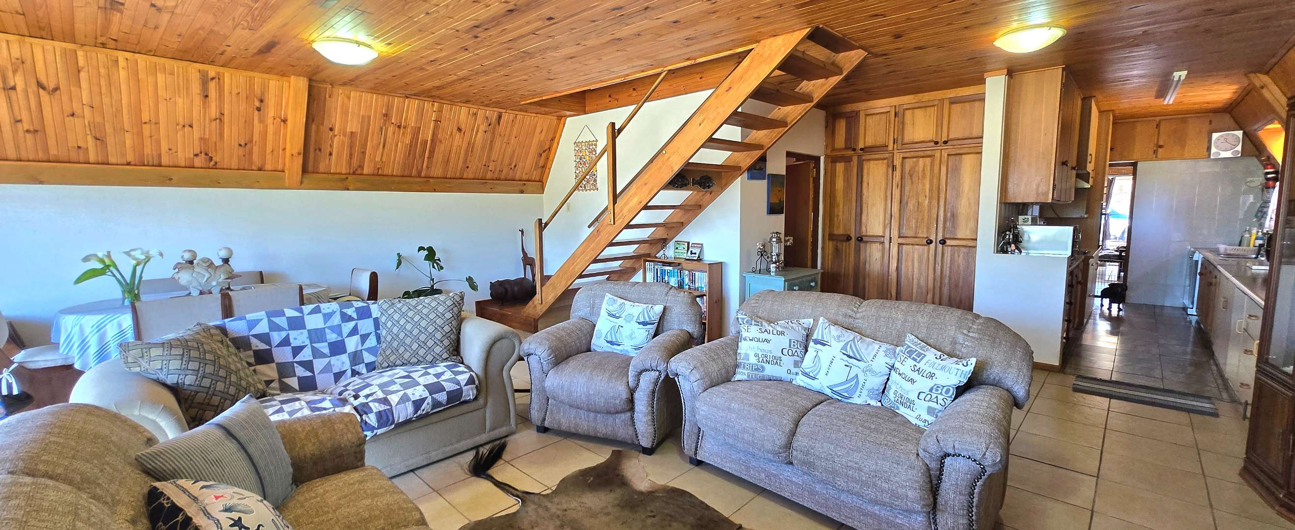 Outdoor living is equally appealing with a well-maintained garden and a built-in braai, perfect for entertaining. A spacious balcony, featuring special design elements, offers an ideal spot to soak in the coastal atmosphere. Parking is abundant with two garages and four additional open parking spaces, catering to multiple vehicles or guests. The property is wheelchair-friendly and pet-friendly, ensuring accessibility and comfort for all.