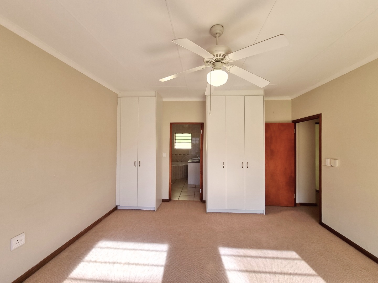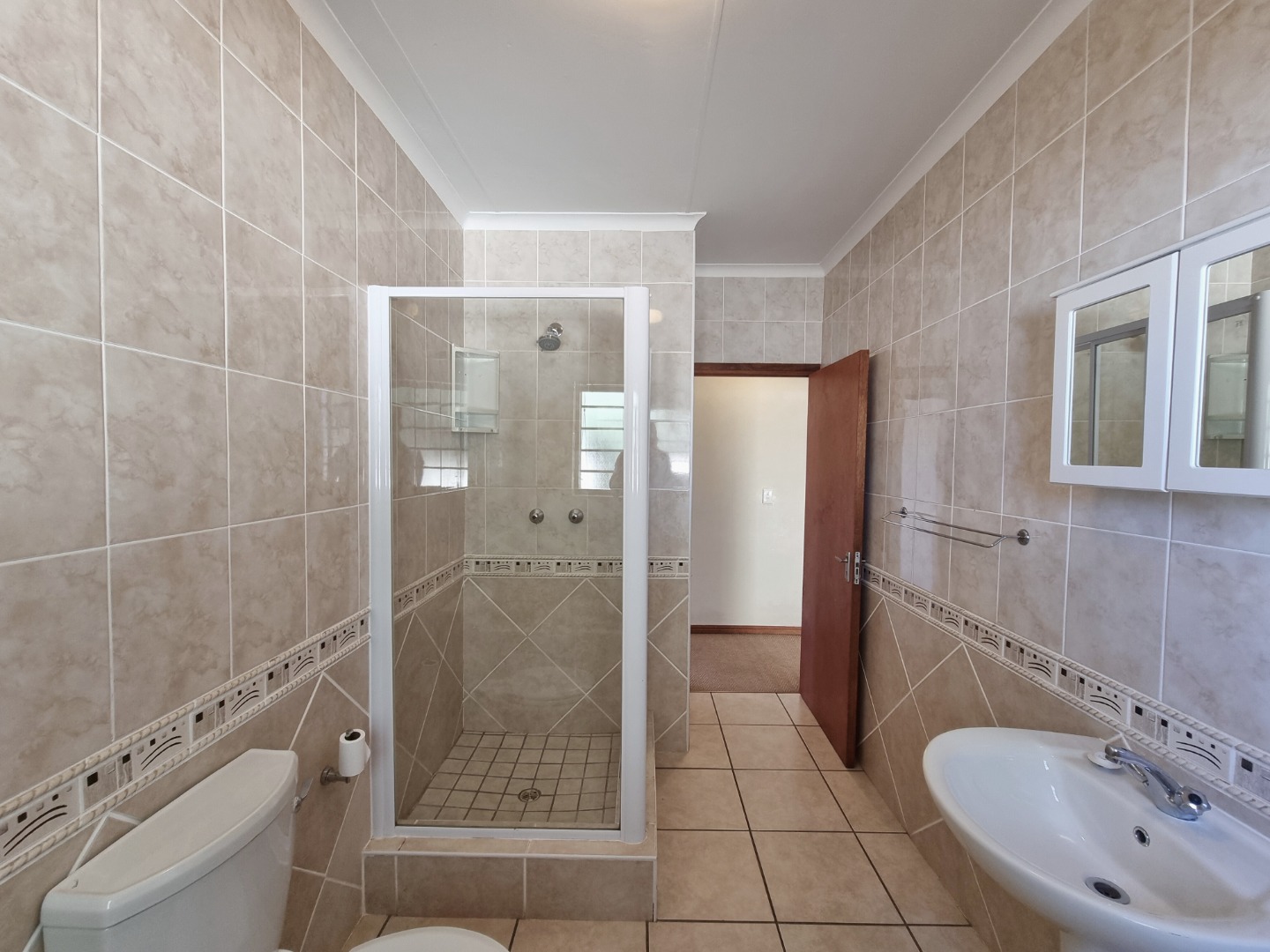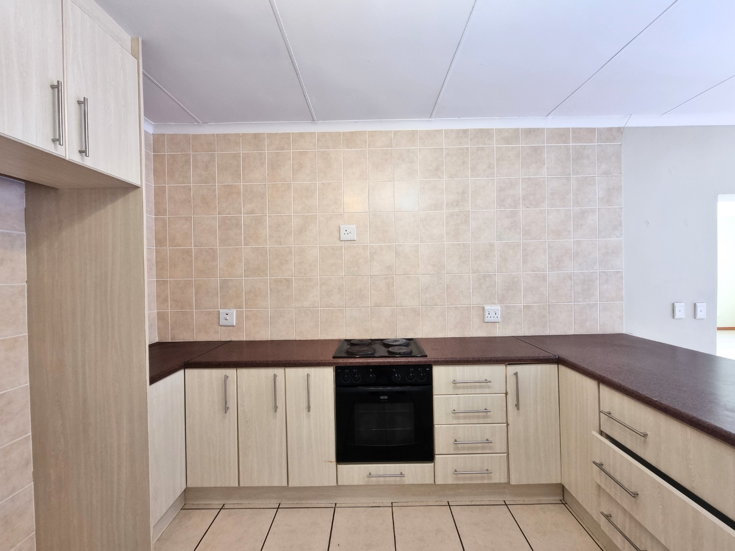 The spacious kitchen is a testament to practical elegance, featuring a charming breakfast nook for morning coffee rituals, gleaming tiled flooring, and generous cupboard space to accommodate all your culinary needs. Every detail has been thoughtfully considered, with blinds ensuring privacy and burglar bars providing that invaluable peace of mind.