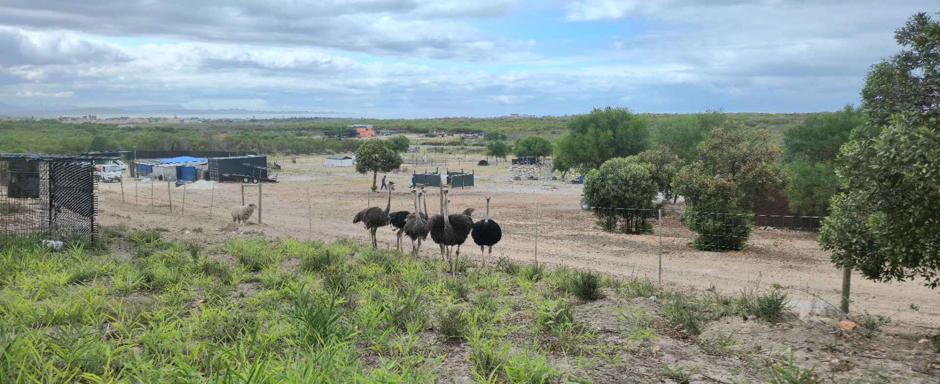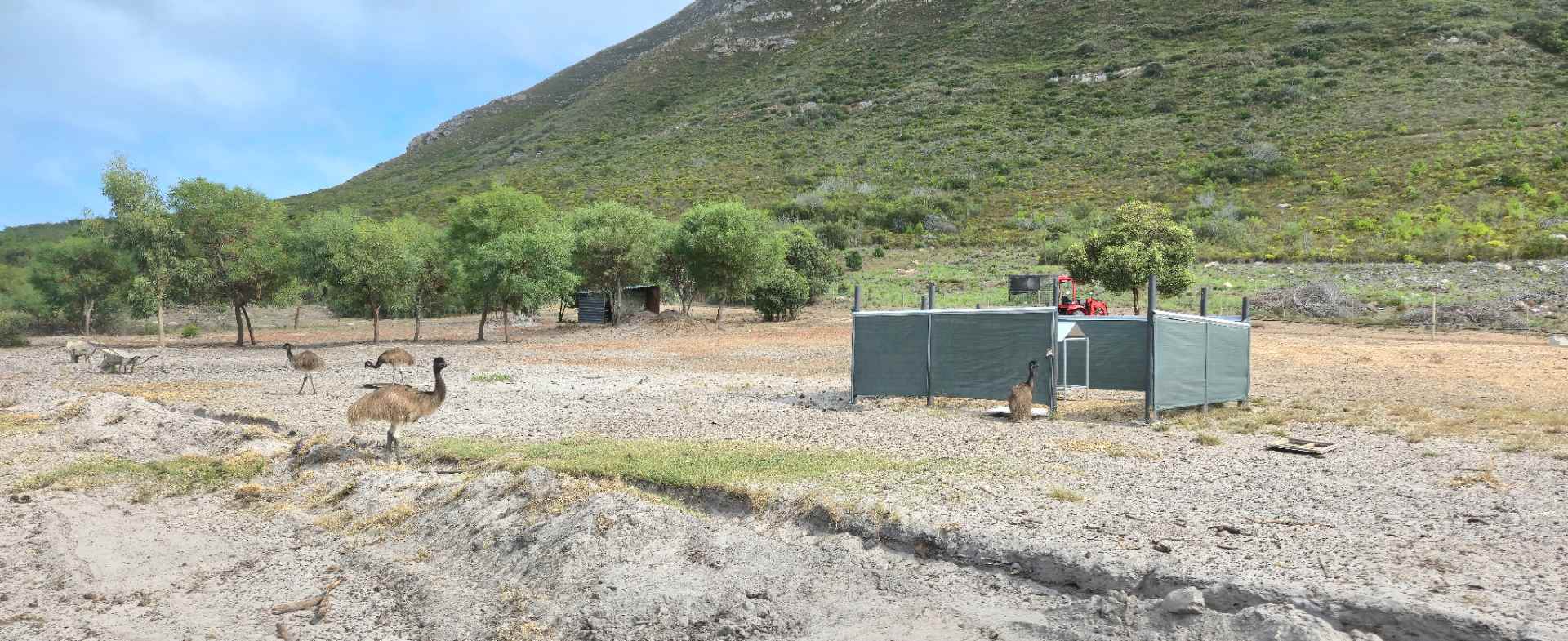 Permits are in place for various animals, and the farm currently hosts sheep, goats, pigs, geese, chickens, ostriches, and emus. Wildlife such as kudu, leopards, baboons, grysbok, and honey badgers are frequently seen, adding to the unique natural setting.