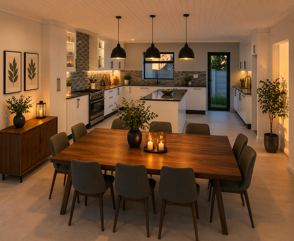 Discover your dream home with this exclusive offering, a brand new property presented by Stefan Joubert from RE/MAX Wine and Whales. Nestled in the serene neighborhood of Franskraal, this stunning plot and plan property is designed to offer modern living at its finest. Please note, the photos used in our marketing materials accurately depict the layout of the house, although all furniture and accessories are AI generated for illustrative purposes.