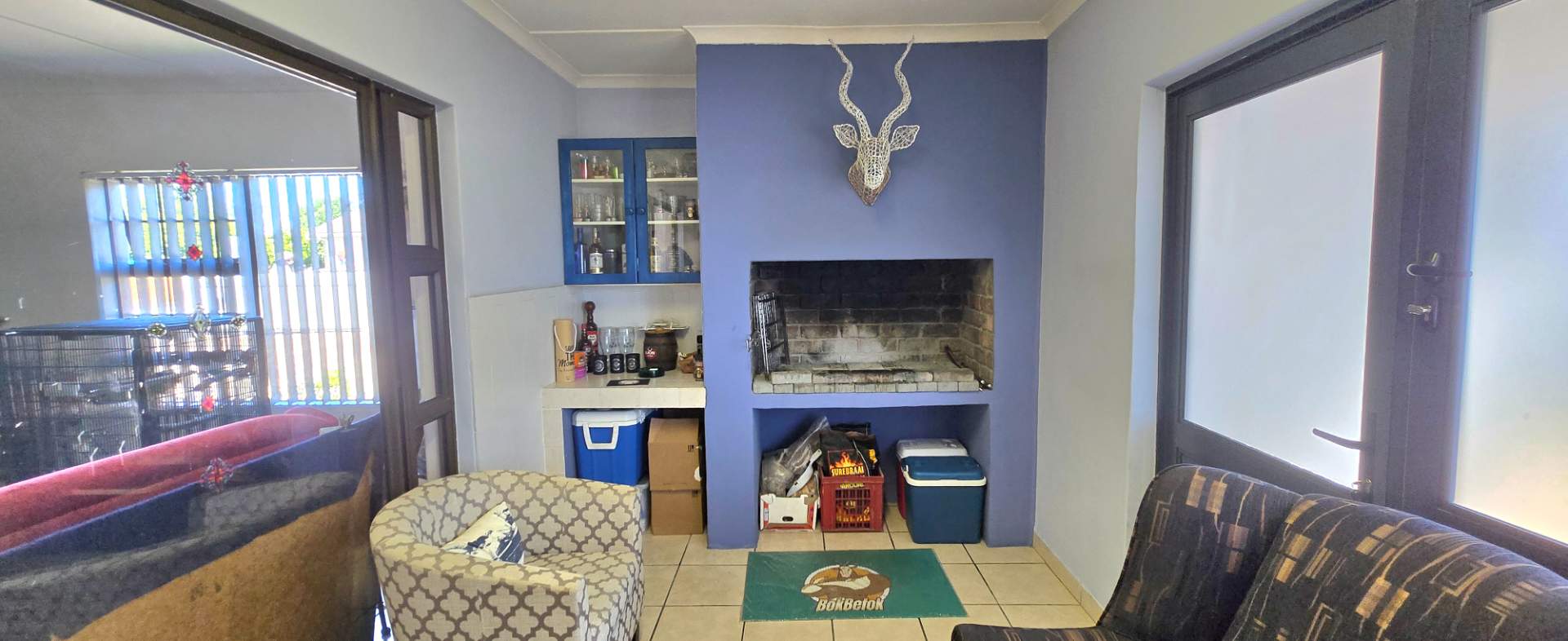 Outdoor living is effortless with a low-maintenance established garden, paved areas, a built-in braai, and three storage rooms. Utilities include fibre internet, a solar geyser, and a backup water tanks, ensuring comfort and efficiency.