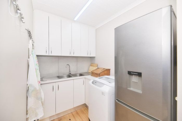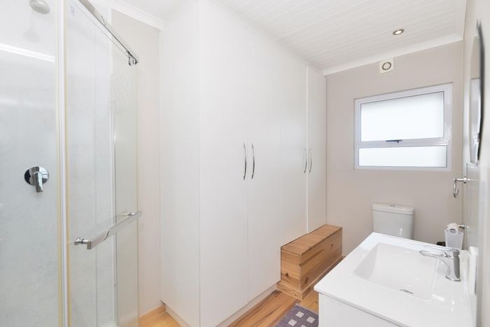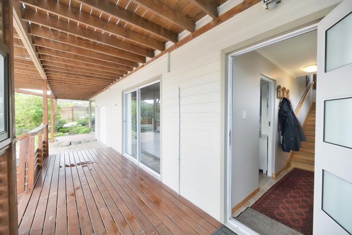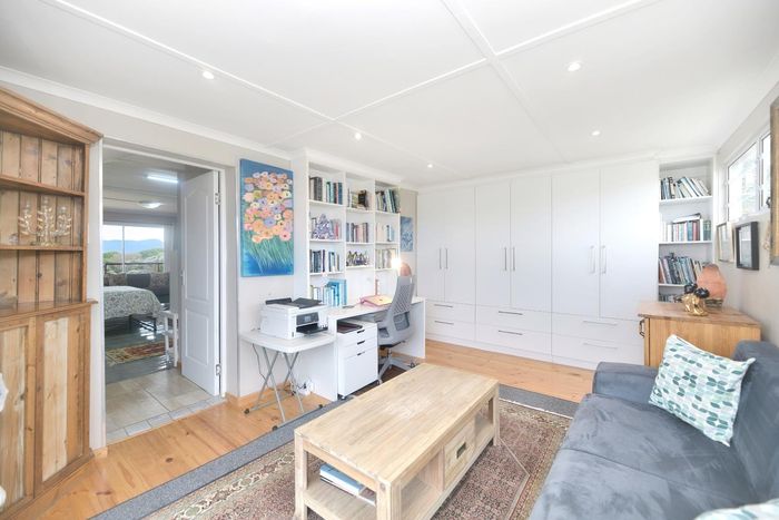 Relaxed coastal living on a sought-after Hermanus street, minutes from schools and shops, with a sunlit open-plan kitchen and large entertaining patio with built-in braai; three bedrooms, two baths.