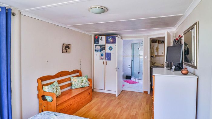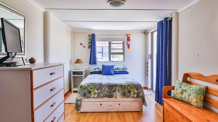 Relaxed coastal living in old Gansbaai with harbour and ocean views, generous garden and bougainvillea, shady stoep and braai-room balcony; sash-window charm, three bedrooms, one bathroom.