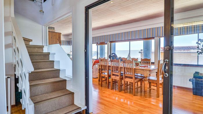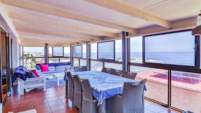 Wake up to whale-watch views and beachside living in De Kelders — three-level home with rooftop penthouse balcony, self-contained suite with shaded deck and built-in braai.