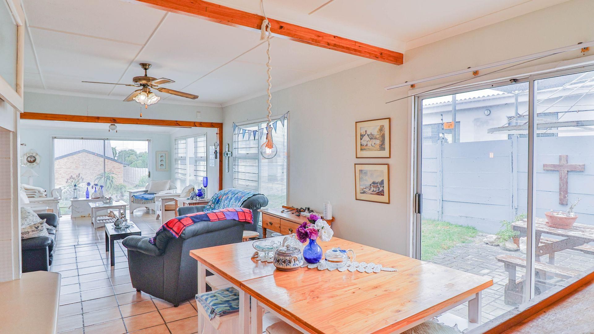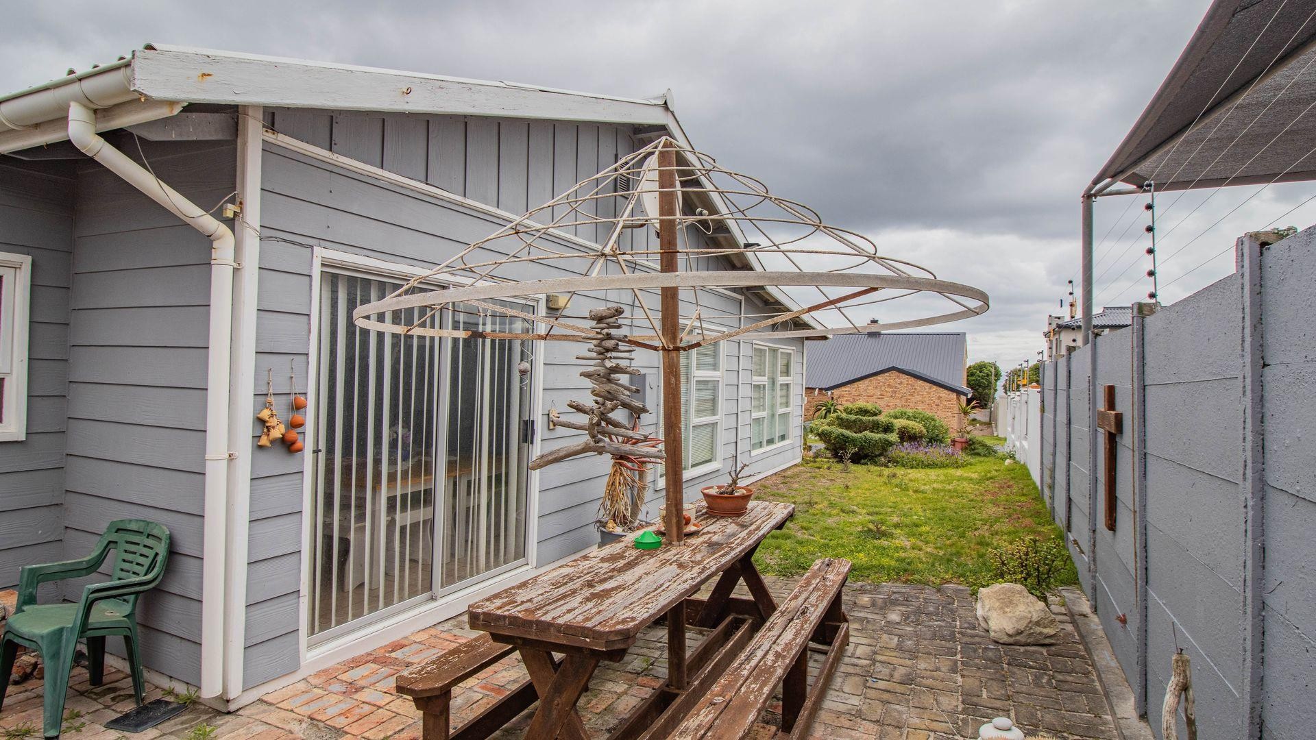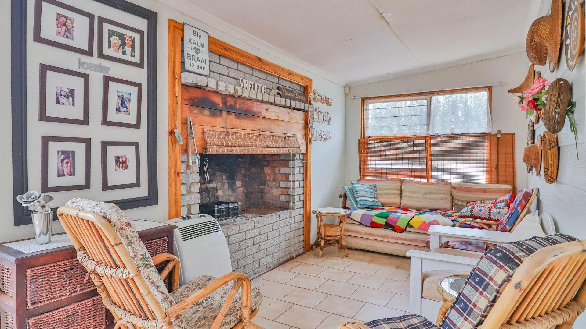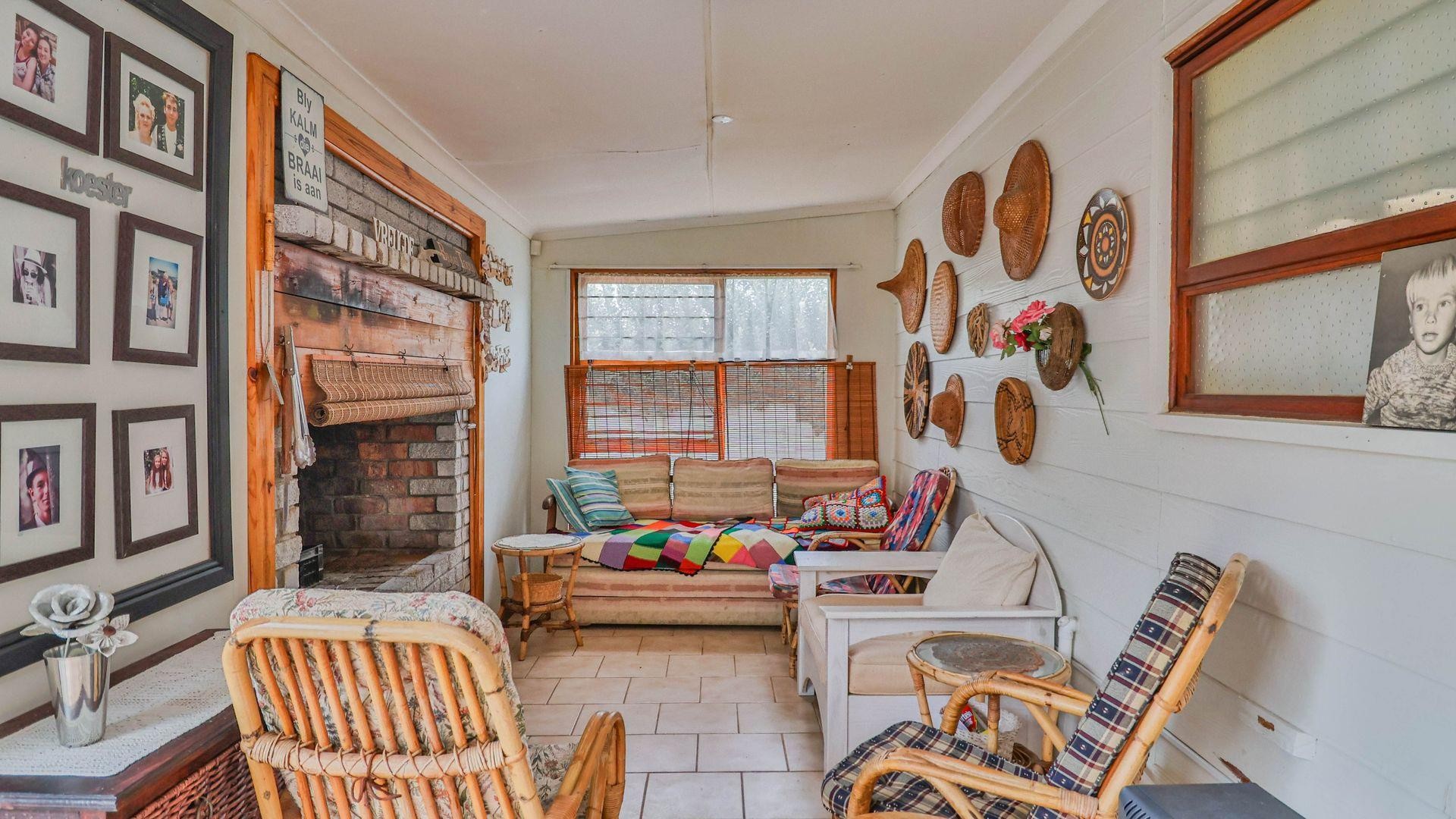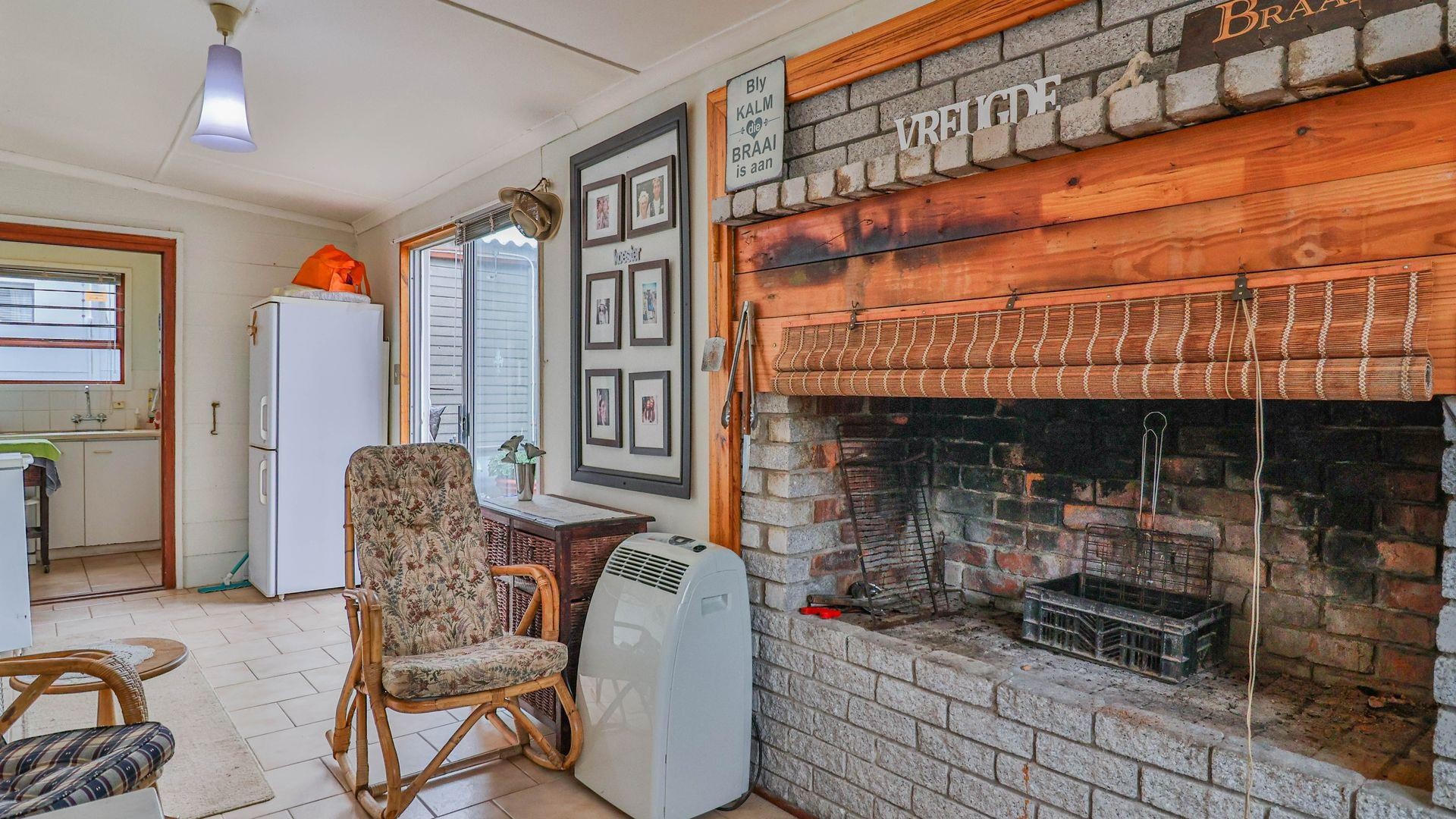 Entering via a cute half-moon patio (complete with broekie lace), the home opens into a spacious tiled living and dining area, which opens via sliding doors on to the al-fresco entertaining space, where you can look forward to long Summer evening meals spent around the table with friends ands family. Adjacent to the living area lies the fitted kitchen with adjoining scullery and a guest loo. Opening out into the back garden (which includes a Wendy house, staff ablution and garage), the braai room is where the Wintery months can be enjoyed. Three bedrooms and a shared family bathroom complete an interior, that while in need of some updates, is character-filled and uniquely charming.