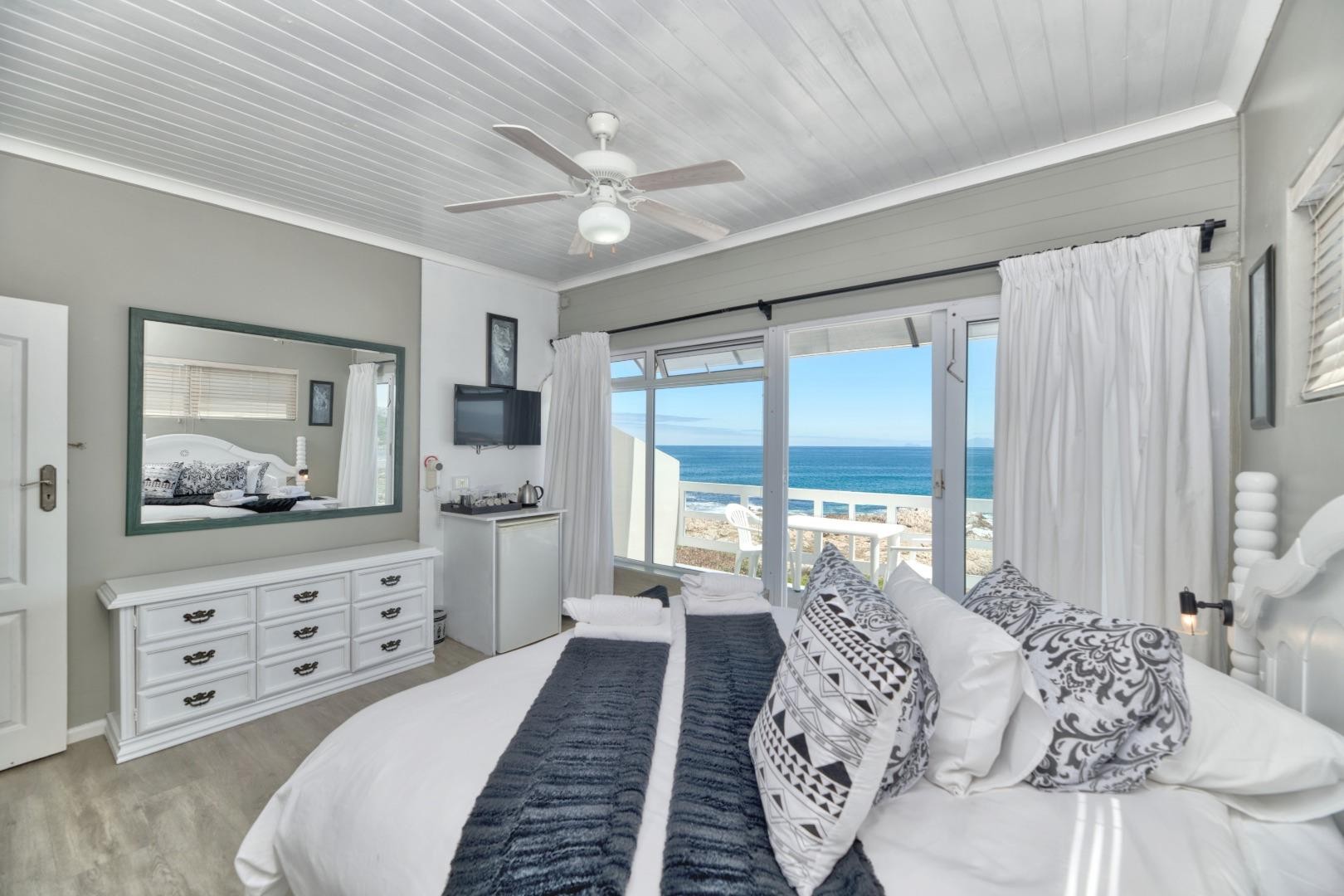 For the astute investor looking to expand their property portfolio, we present an exceptional opportunity. Boasting a total of seven bedrooms and seven bathrooms, this shoreline stunner operates as a fully established guest house with an excellent reputation and loyal clientele, consistently upholding 4-star standards. With uninterrupted ocean views across Walker Bay through to Hermanus, this perfectly positioned property can continue as an income-generating investment or be converted into a spacious private residence.