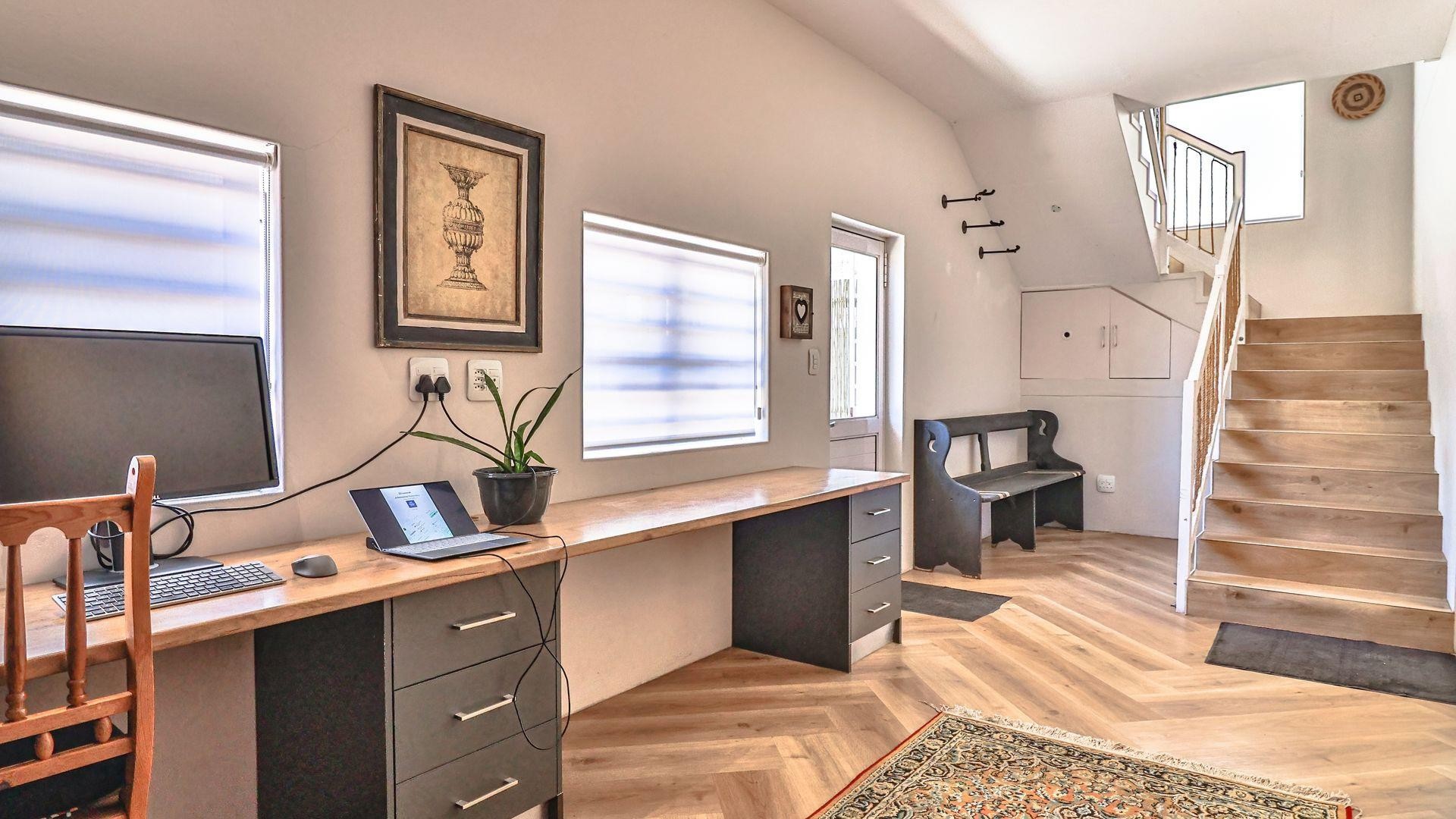 Not only energy-efficient and eco-friendly, this property is beautiful, well-positioned, and income-generating, as the lower level is also used as a holiday property. A well-established, laid-back holiday destination, De Kelders is home to Stanfords Cove (for safe swimming and picnicking), whale spotting, fynbos, an unforgettably lovely natural environment, and so much more. Get in touch and let's arrange a tour of this dream-come-true property