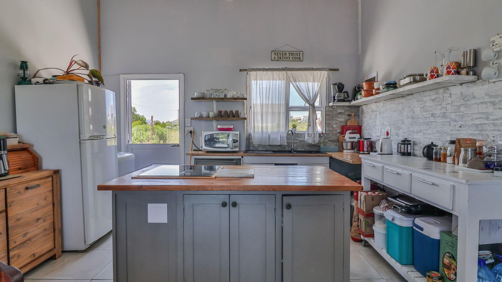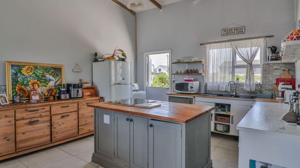 A Big Little home, just made for those spontaneous sea-side holidays. Built on comfortably sized stand, the property includes a guest suite, with a private entrance for visitors or family-members, as well as three additional bedrooms and a shared bathroom. Tiled, light and welcoming, the open plan living area includes a pretty kitchen with island, open shelving and wooden counter-tops. With bonus extras like a Gas Geyser, alarm system, 3x6m Wendy house for extra storage and a pleasantly surprising price-tag, I'm sure you'll want to have a closer look at this property, so get in touch and let me show you around the village I call home.