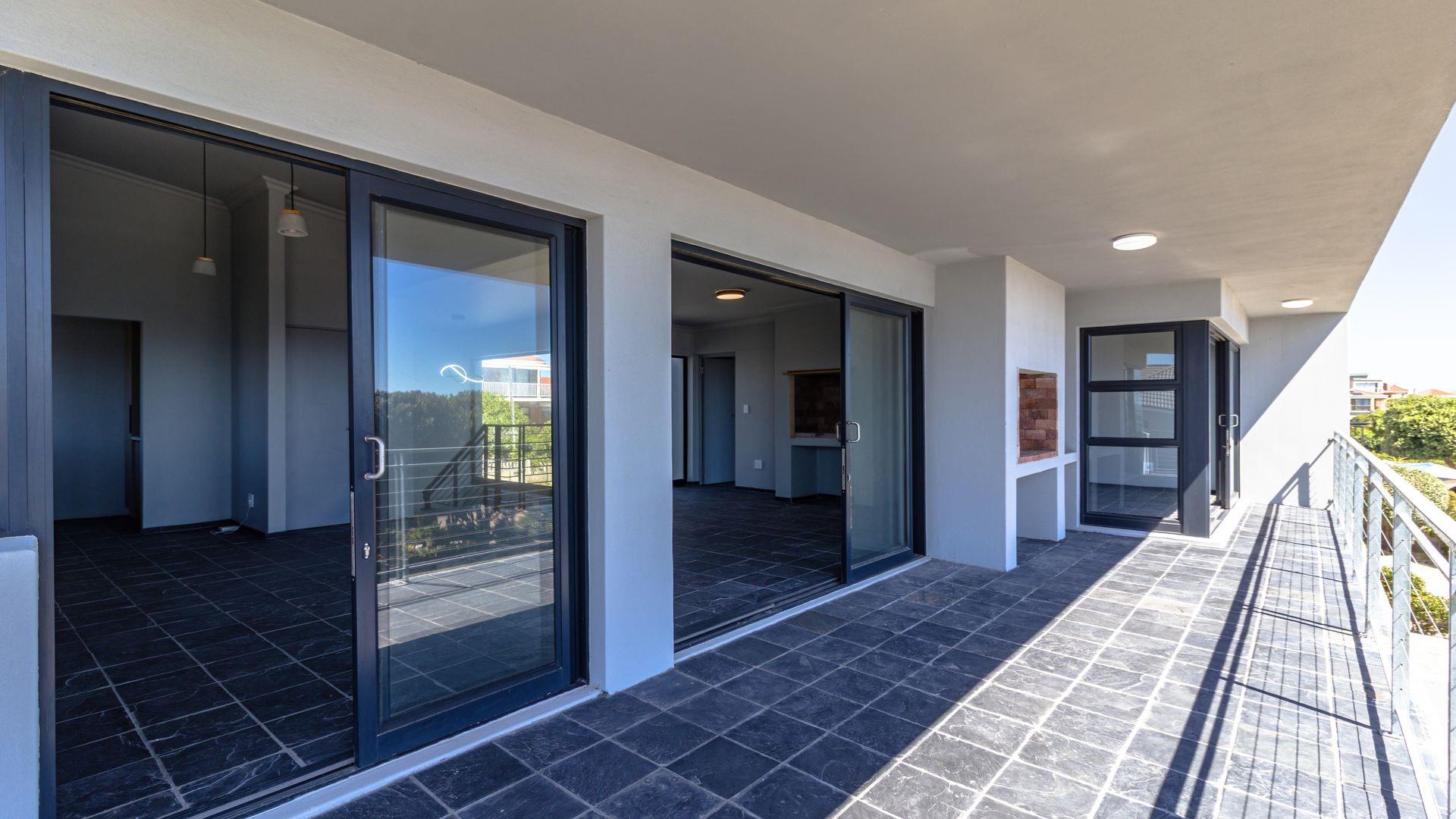 From the rear of the property, you are invited inside to explore the ground floor - wash the sand off your feet and store your shoes in the mudroom, then take a walk through to the two bedrooms flanking the pool, and patio area, both of which boast en-suite bathrooms, with high-end finishes, fittings, and sea views. Conveniently situated on this level is the laundry room, opening into the garage, a bonus for the occupants of the bedrooms! Upstairs, that spectacular ocean view is again the highlight of the generously sized living and entertaining area with glass frontage opening out on to the balcony which includes a built-in braai. Look forward to watching the sun-set over the sea at the end of the day, sitting right here enjoying the fresh sea breezes and the sound of waves. In addition, the Living area includes a fire-place for those cooler evenings and is open-plan to a designer modern kitchen with adjacent scullery. There is a guest loo at the top of the stairs. The Master suite, leading off from the living area is an absolute delight; opening onto the balcony, it includes a spacious walk-in closet, en-suite bathroom and will afford you an escape from the rest of the household. Additional features include an Alarm system with security beams and an outdoor irrigation system. Positioned within walking distance of the shoreline in a sought after stretch of our lovely village, this is property is a clear winner and I invite you to get in contact and arrange a viewing.
