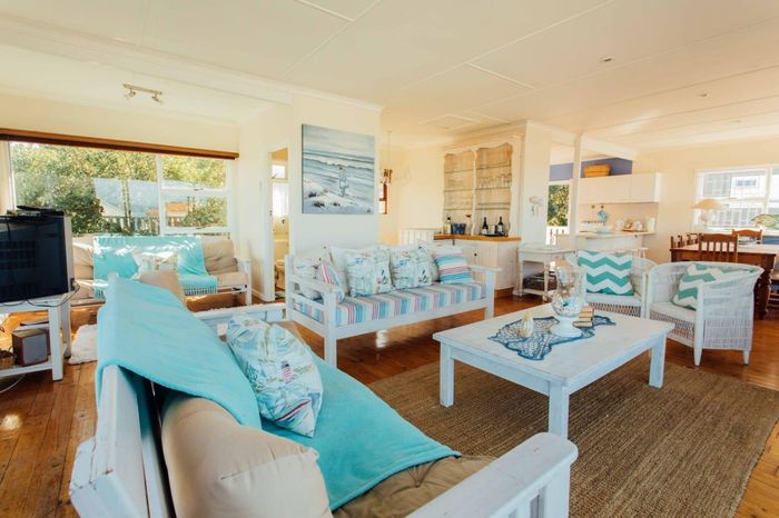 Seaside retreat in Vermont, Hermanus — relaxed coastal living with panoramic sea views and expansive deck for entertaining; furnished, pet-friendly, with study, three bedrooms and double carport.