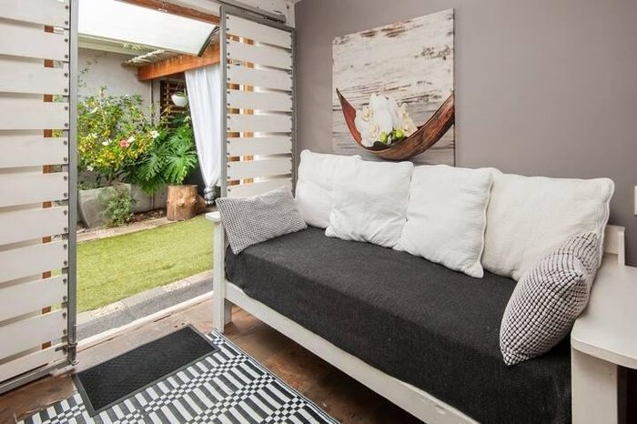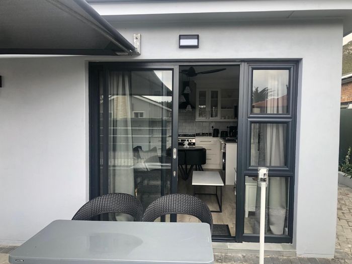 Relaxed coastal living in central Hermanus, steps from Marine Hotel, Woolworths and Checkers — fully furnished two-bedroom, two-bath home with private patio, built-in braai and dedicated parking.