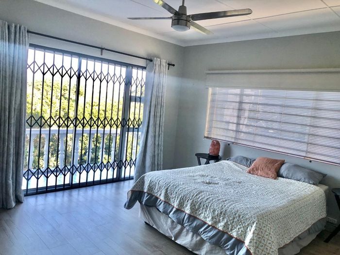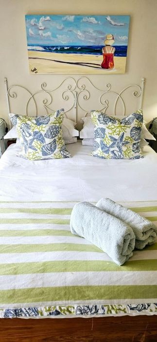 Seafront retreat on Atlantic Drive, Onrus, Hermanus — furnished holiday home with covered patio and built-in braai; three en-suite bedrooms and six parking bays.