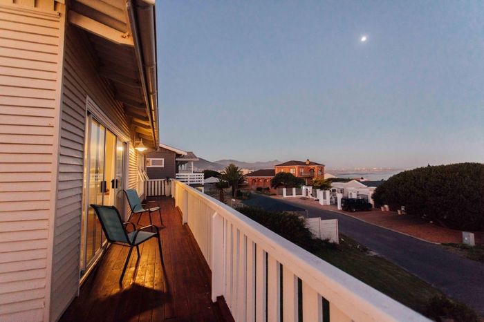 Relaxed coastal living near Hermanus in a quiet cul-de-sac with ocean views from a wrap-around balcony, private garden, solar inverter, flexible studio — three bedrooms, three baths and double garage.
