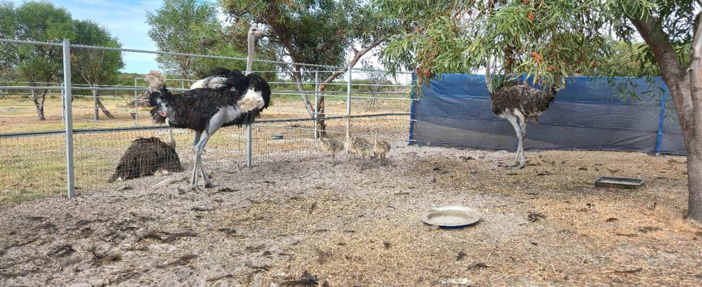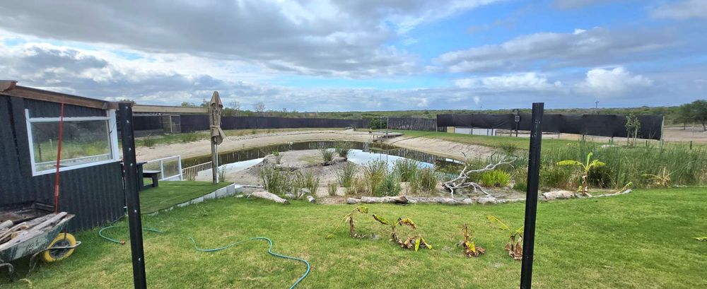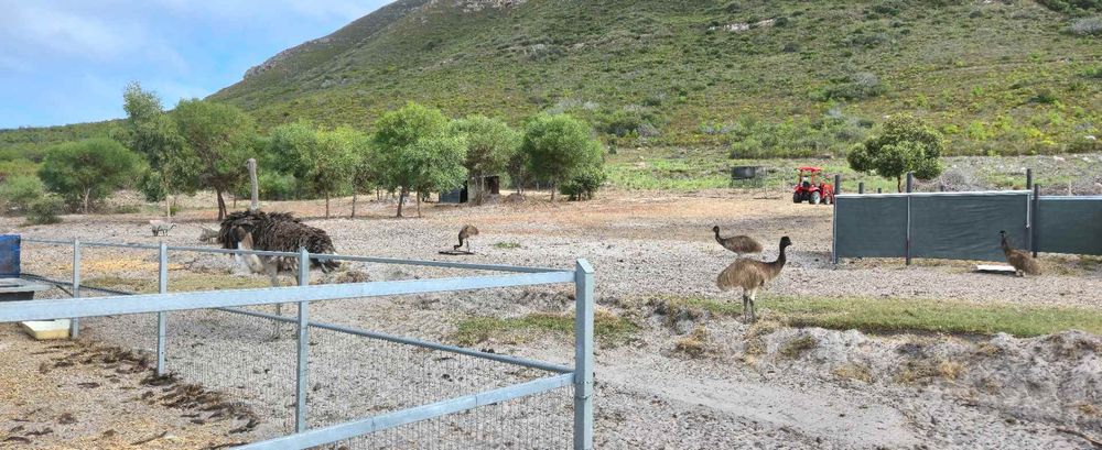 Permits are in place for various animals, and the farm currently hosts sheep, goats, pigs, geese, chickens, ostriches, and emus. Wildlife such as kudu, leopards, baboons, grysbok, and honey badgers are frequently seen, adding to the unique natural setting.