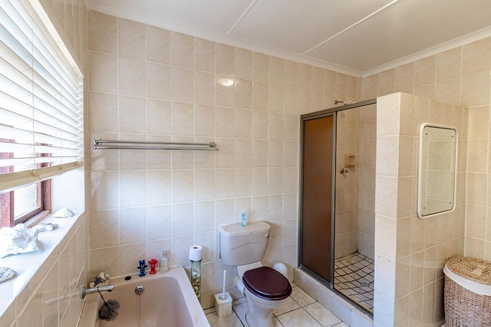 Built across two levels and lying within walking distance of the ocean, we invite you to have a closer look at this Franskraal home. Designed with holidays and entertaining in mind; the ground floor includes a sprawling, sheltered outdoor entertaining area, complete with a jacuzzi, built-in bar and braai which leads into a spacious open plan living and dining space with yet another built-in braai and adjacent modern, fitted kitchen. The first floor boasts two comfortable bedrooms, of which, the master bedroom is en-suite, and a family bathroom.