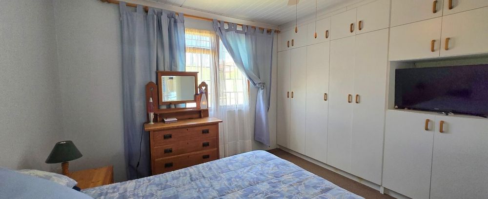 A standout feature of this 3-bedroom house in Franskraal is its huge yard, offering plenty of room for children, pets, or future extensions. The property also includes a double garage (one door automated), distant mountain views, and strong security features such as burglar bars, an alarm system, and day-and-night lighting for peace of mind.