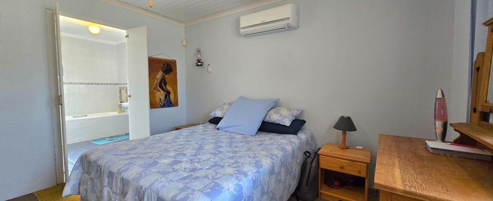 The home features an open-plan kitchen, living, and dining area that flows effortlessly into a welcoming indoor braai room – perfect for entertaining friends and family all year round. The outdoor braai area and patio provide the ideal setting for relaxed coastal living and summer gatherings. The main bedroom is en suite and fitted with air-conditioning for extra comfort, while the second and third bedrooms are spacious and versatile.
