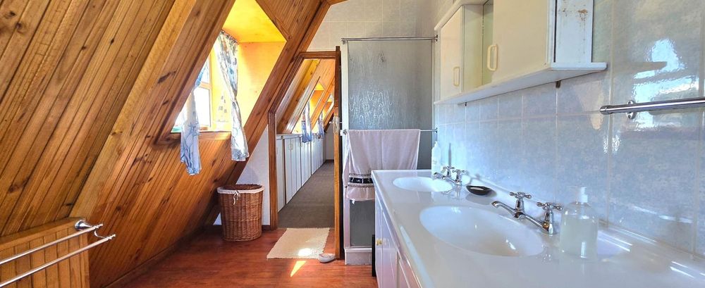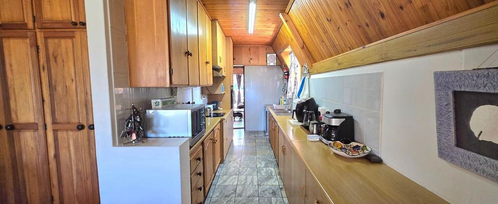 Discover this expansive 5-bedroom, 3-bathroom residence in the charming coastal suburb of Franskraal, Gansbaai. Boasting a generous 400 sqm under roof on a 704 sqm erf, this property offers exceptional dual living potential, making it ideal for a large family, holiday home, or investment opportunity. Enjoy breathtaking scenic and distant sea views from various vantage points, enhancing the tranquil country living experience.