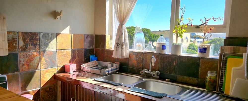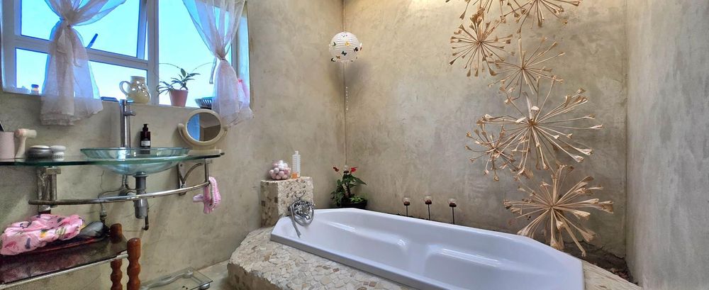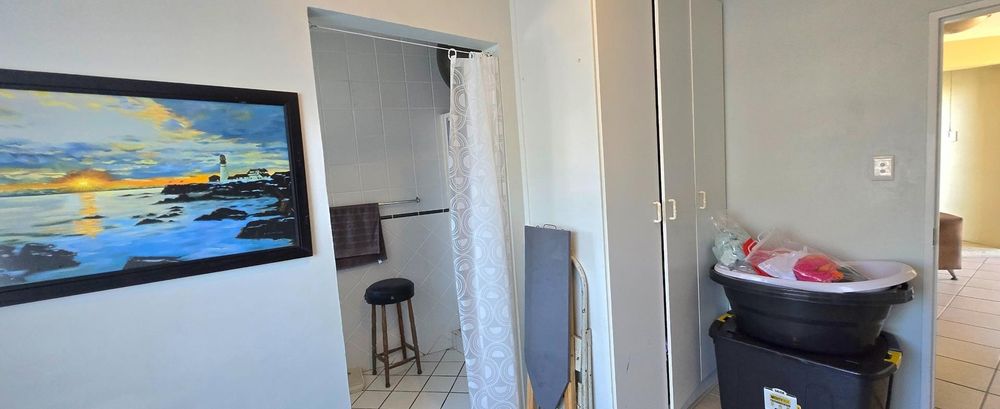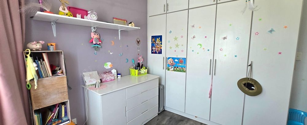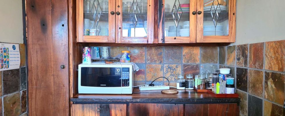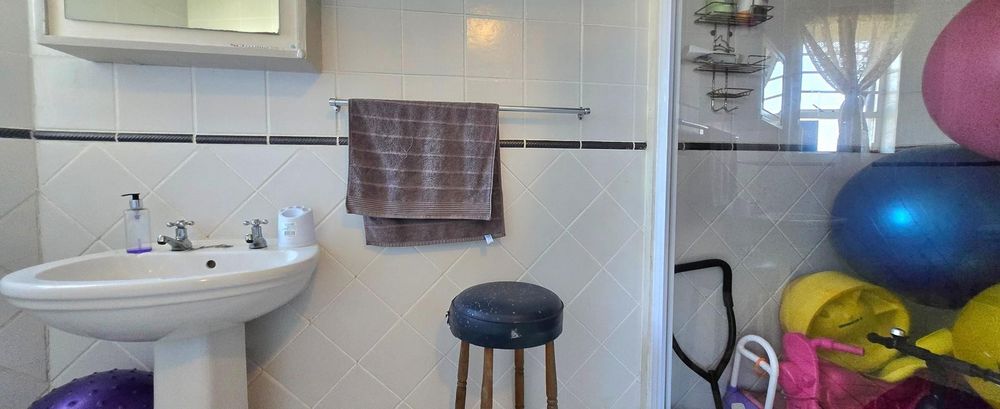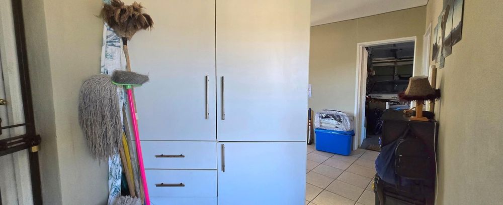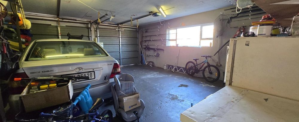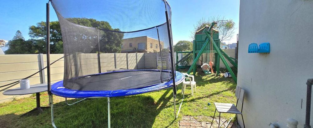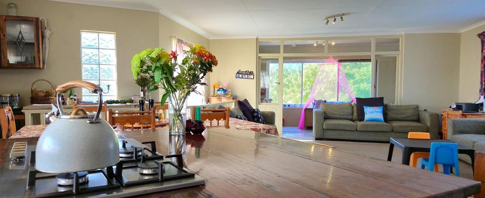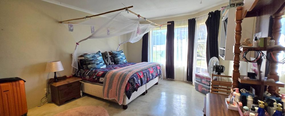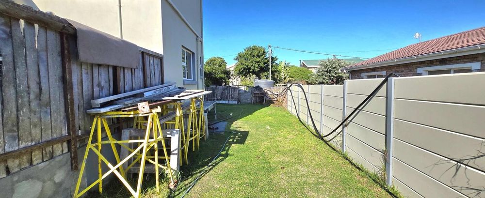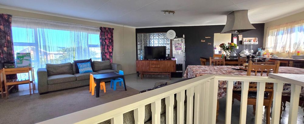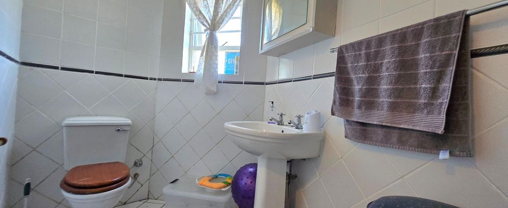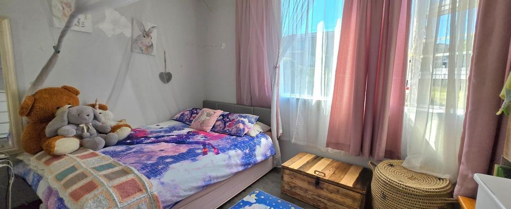 The open-plan kitchen is ideal for modern living, featuring an adjacent scullery for added convenience. The upstairs living and braai room offer distant sea views, perfect for entertaining all year round thanks to the built-in indoor braai. The home also features low-maintenance cement screed flooring throughout.