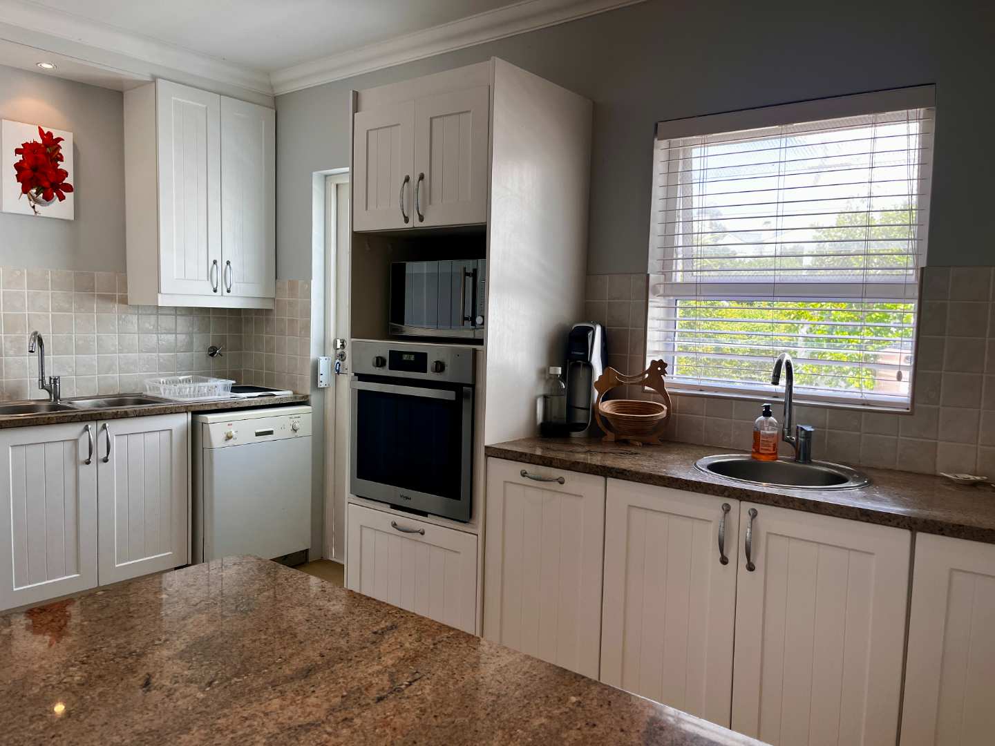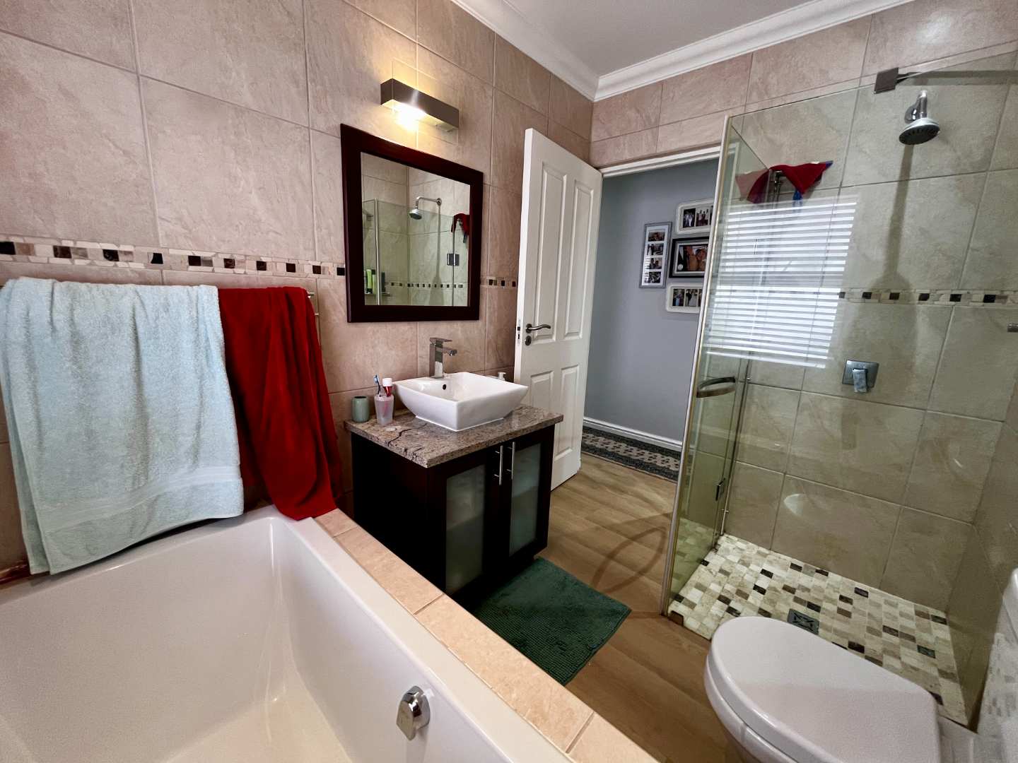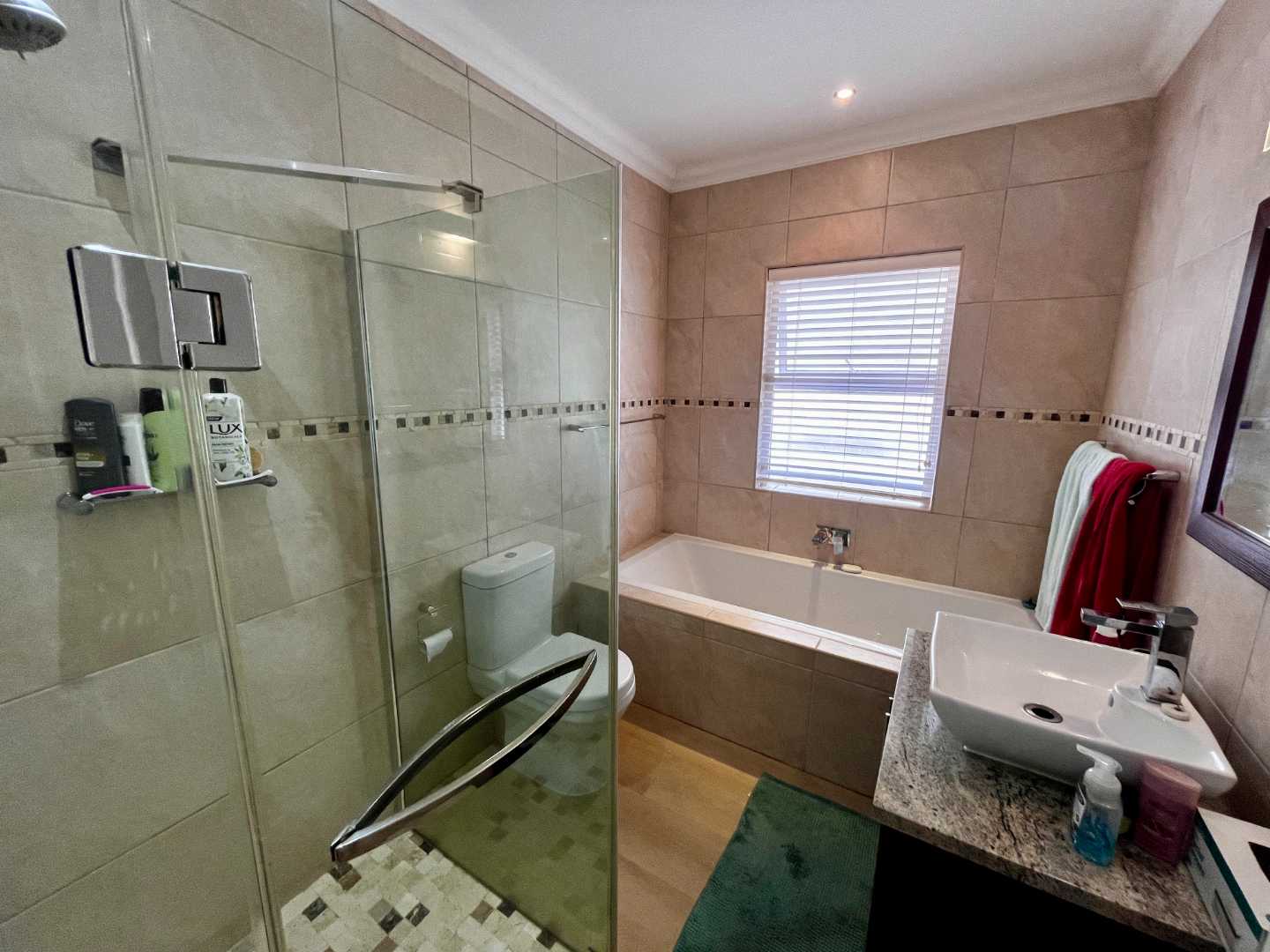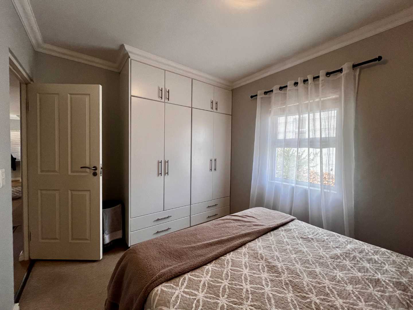 Step inside to find three spacious bedrooms, including a luxurious main bedroom with an en-suite bathroom. The open plan dining room and lounge, complete with a cozy fireplace, create a warm and inviting space for gatherings. Adjacent to the lounge is a generous braai room with stackable glass doors that flows onto the outside patio while seamlessly connecting indoor and outdoor living spaces.