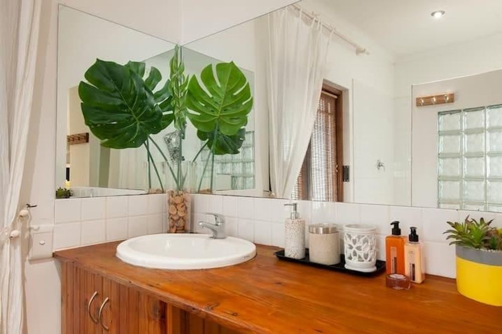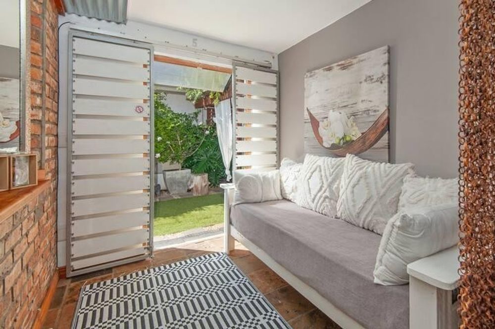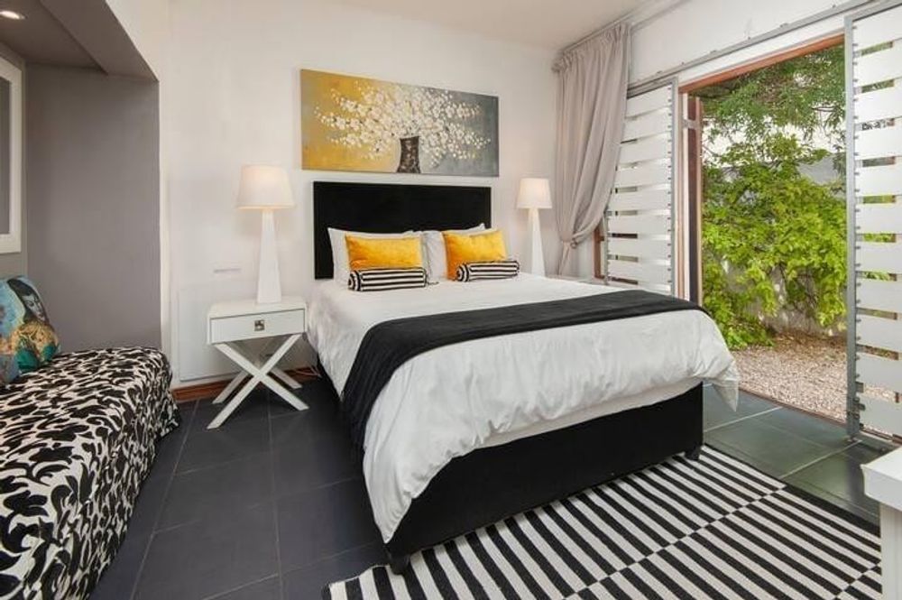 Discover this stylish and fully furnished two-bedroom, two-bathroom rental property located in the heart of Hermanus Central. Each bedroom boasts a modern aesthetic, featuring comfortable beds, contemporary decor with striking black, white, and yellow accents, and en-suite bathrooms for ultimate privacy and convenience. The main bedroom offers direct access to a private garden patio through elegant sliding doors, enhancing natural light and providing a serene outdoor retreat.