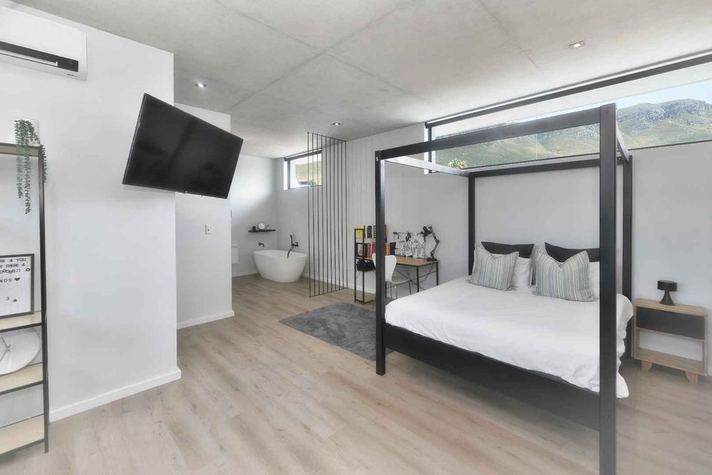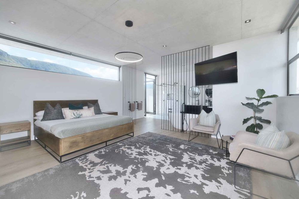Set in the peaceful and very popular suburb of Hermanus Heights but biting on the lip of the golf course boundary, this home presents an exquisite fusion of industrial-chic design and coastal elegance. The striking facade, complemented by a meticulously paved driveway and garden, offers a captivating first impression.