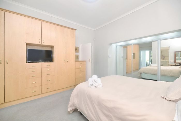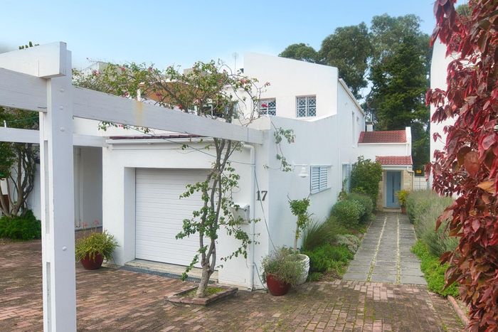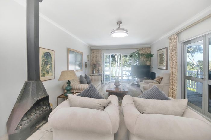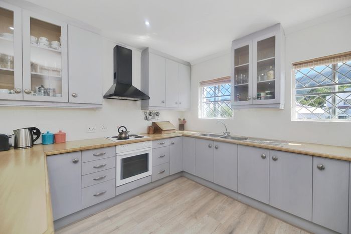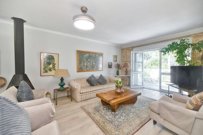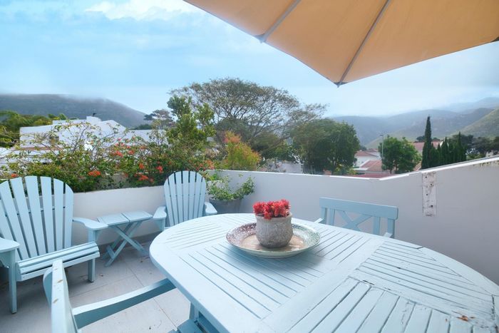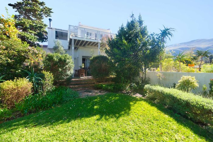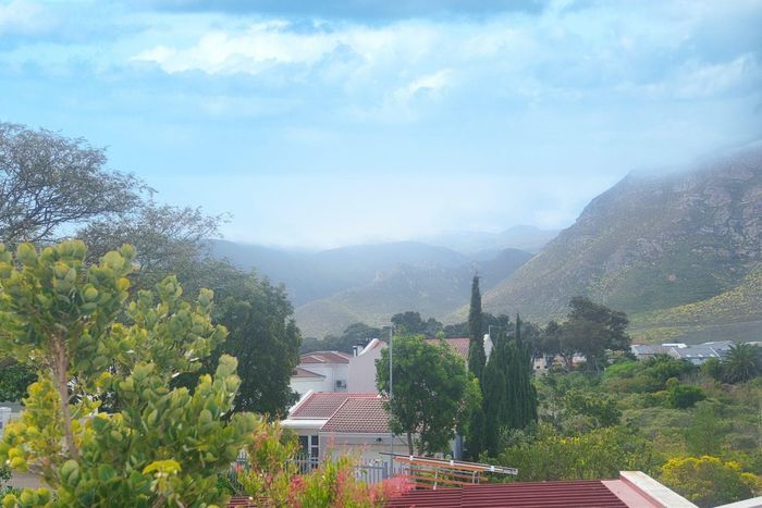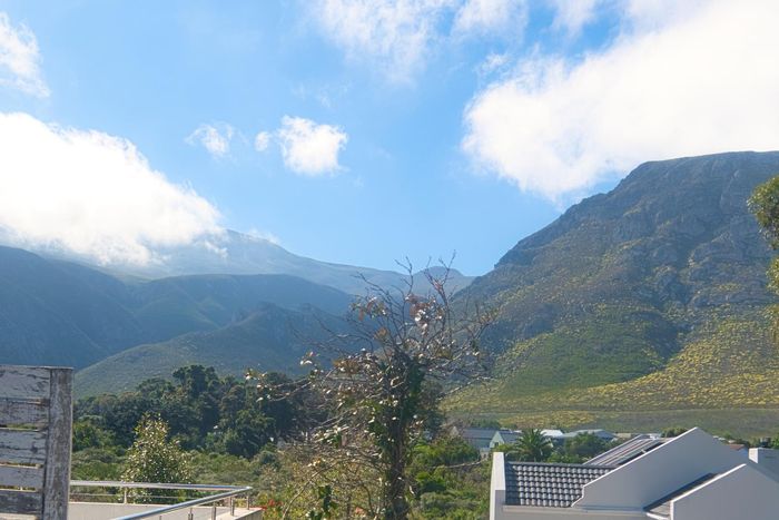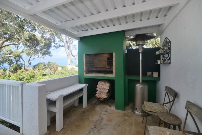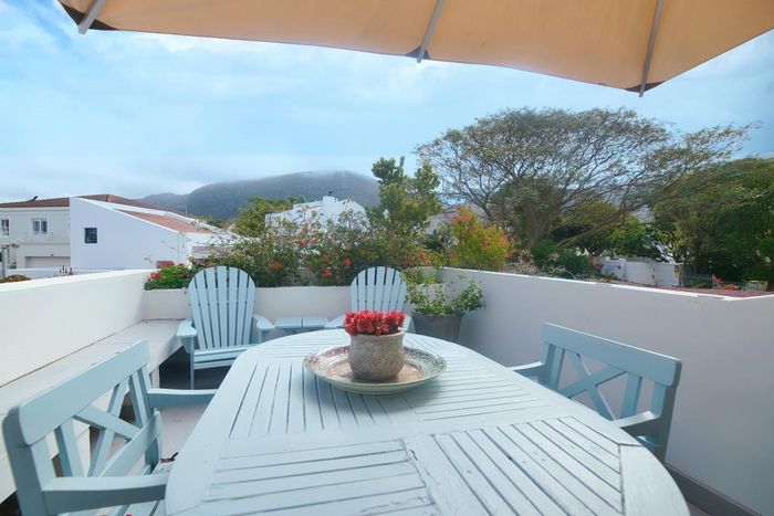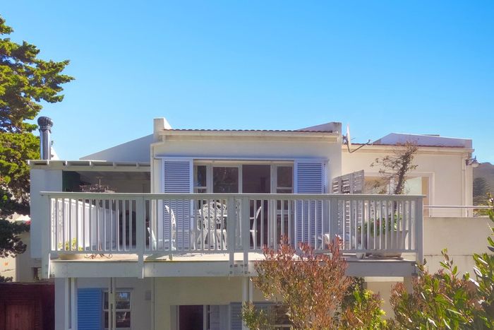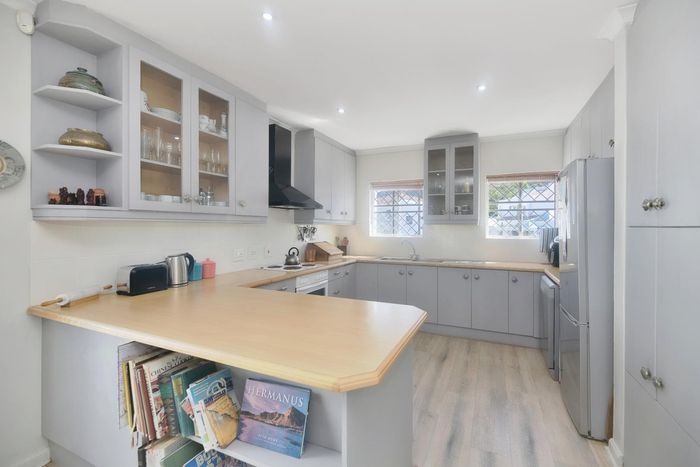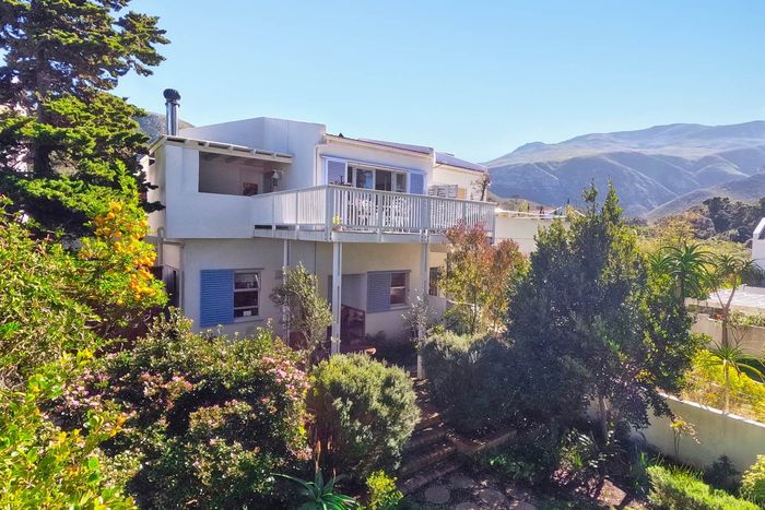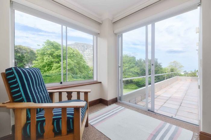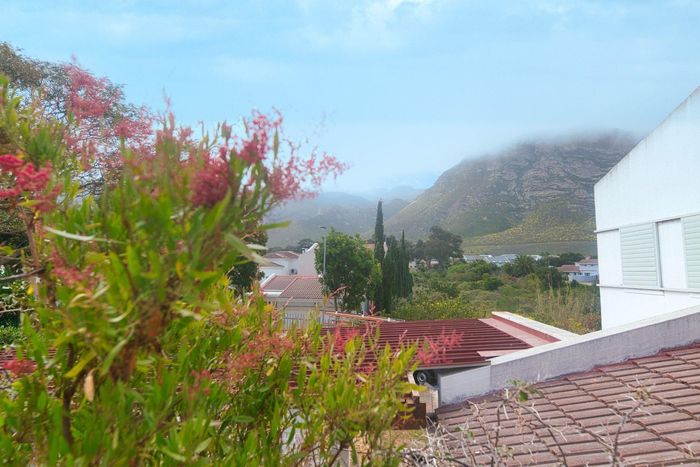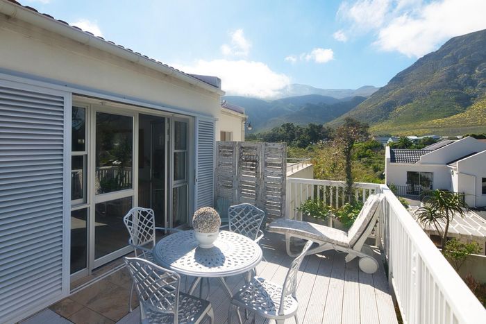 Seaside lifestyle in Fernkloof, Hermanus — quiet cul-de-sac living with wrap-around balconies offering sea and mountain views and a sheltered deck with built-in braai. Three bedrooms, 2.5 baths, double garage.