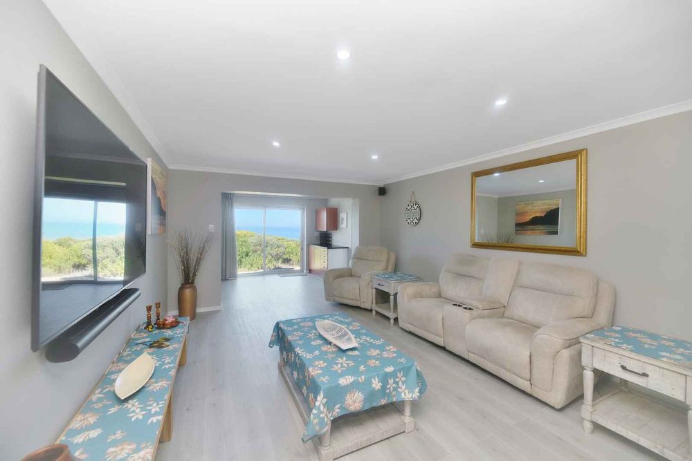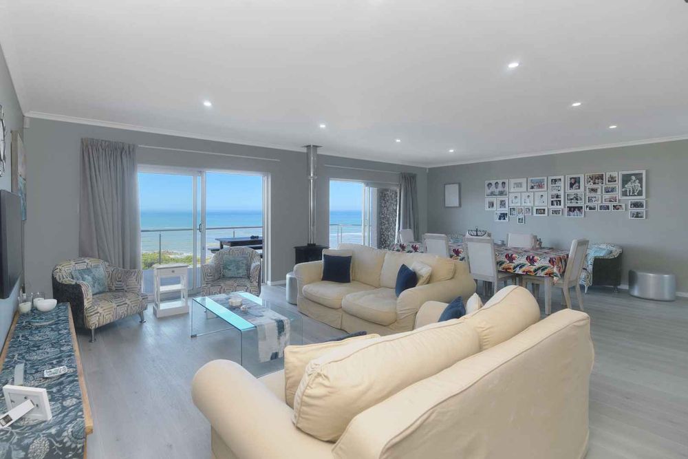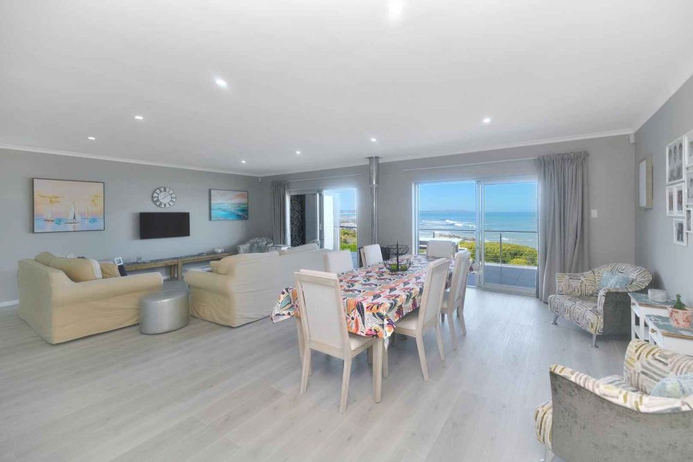 Perfectly positioned between the coastal villages of Kleinbaai and Franskraal, not only does this property boast panoramic views of the sea and surrounding landscape, it is energy efficient too, with an 8kw Inverter and 18 Solar Panels keeping you sustainable and off-grid. Freshly renovated, the first floor includes an open-plan living and entertaining space, with fire-place, which opens on to the balcony, along with a sleek and superbly appointed kitchen. Of the four spacious bedrooms on the first floor, two overlook the ocean and include private en-suite bathrooms - now picture yourself waking up to those views - that's luxury on a different level.