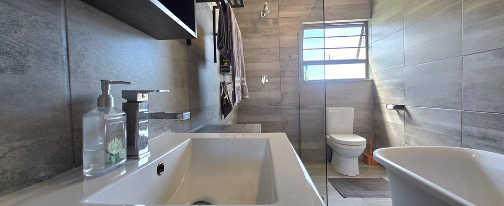 Set on a generous 792 m2 corner stand just 750 metres from the charming Kleinbaai Harbour, 1 Grysbok Street offers an exceptional blend of family living and investment potential. This single-storey freestanding home features a spacious main house alongside two self-contained flatlets, making it ideal for extended families, dual living, or rental income through short- or long-term leases. The property comprises four bedrooms, four bathrooms, and two kitchens, including an open-plan lounge and dining area, a family room, and convenient laundry facilities.