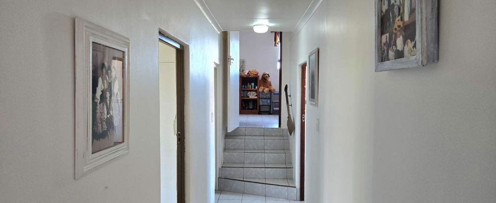 Outdoor living is effortless with a low-maintenance established garden, paved areas, a built-in braai, and three storage rooms. Utilities include fibre internet, a solar geyser, and a backup water tanks, ensuring comfort and efficiency.