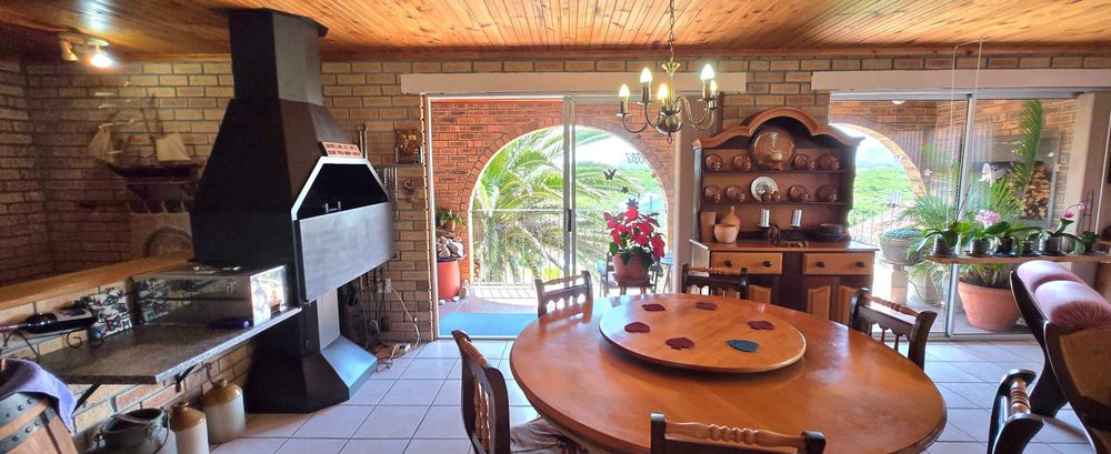 Upstairs, the home opens into a spacious open-plan design where the kitchen, dining and lounge areas flow seamlessly together. A built-in braai makes entertaining effortless all year round, whether you are hosting family gatherings or enjoying relaxed evenings with friends. Natural light fills the space, enhancing the welcoming atmosphere and highlighting the home’s neat, well-kept condition.