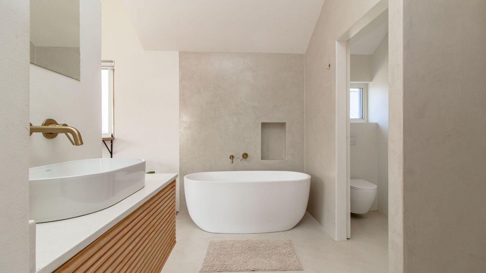 Two en-suite bathrooms, including a main suite with double vanities, candle nook, and bookshelf space