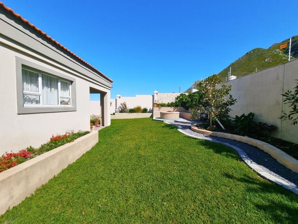 Where ocean meets mountain, and every day feels like a retreat, you will find this home nestled on an expansive 1,416 m2 stand in Hermanus' prestigious Berghof gated estate, this custom-built home captures the magic of coastal living. Here, the sea stretches endlessly before you, while mountain peaks frame your garden sanctuary.