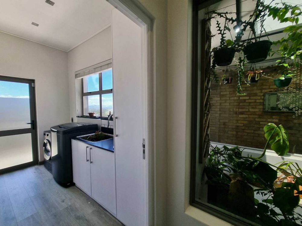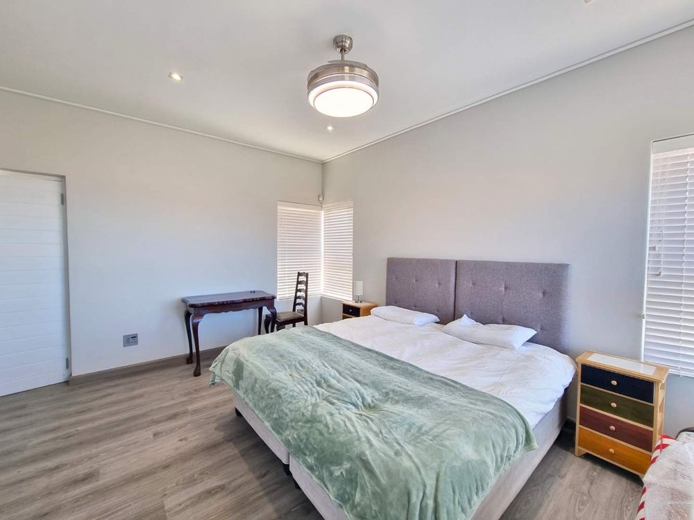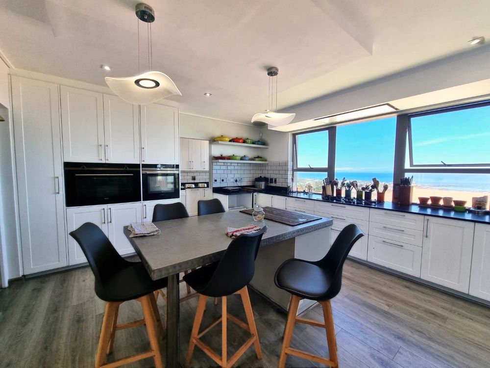 The heart of this magnificent home flows seamlessly through an open-plan design that epitomizes effortless entertaining. A chef's dream kitchen, outfitted with premium integrated appliances, a generous scullery, and separate pantry, opens gracefully into the dining area and inviting TV lounge, warmed by a striking wood-burning fireplace. Step onto the expansive entertainers' patio, where a sleek stainless steel fire and gas braai combination beckons you to savor long evenings overlooking the Onrus River and the endless ocean beyond-a setting where memories are made and moments are treasured.