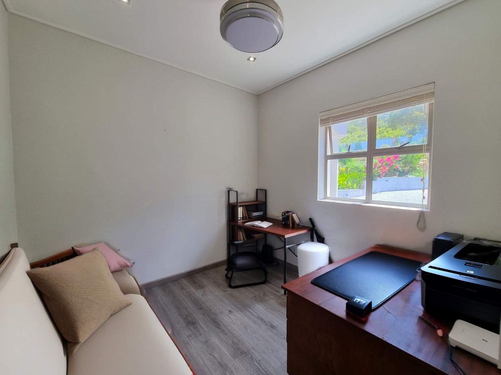 The luxurious primary suite offers a serene sanctuary with uninterrupted sea views, featuring a lavish en-suite bathroom complete with double vanity and an enchanting al fresco shower that connects you intimately with nature. Two additional en-suite bedrooms form a self-contained guest wing with its own lounge and kitchenette, opening onto generous garden spaces—ideal for extended family or as a private retreat. A versatile study with attached bathroom offers potential as a fourth bedroom, while a charming glass observatory provides the perfect haven for orchid enthusiasts or quiet contemplation.