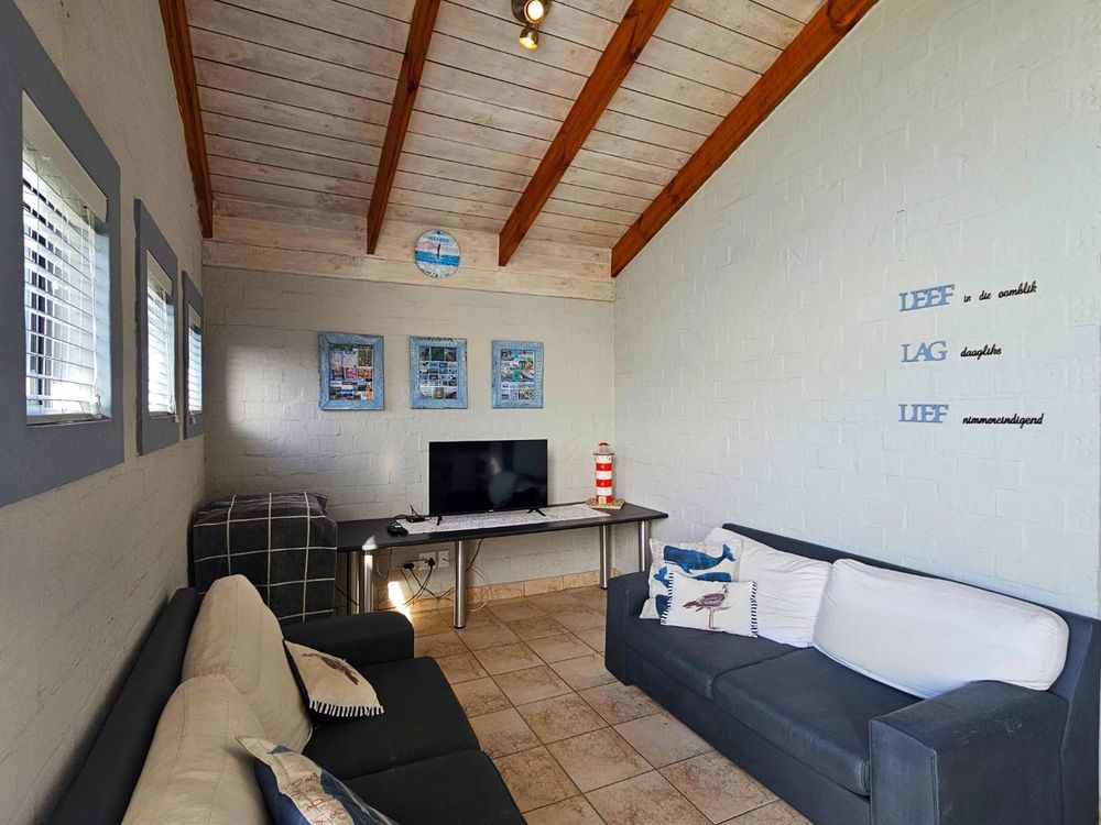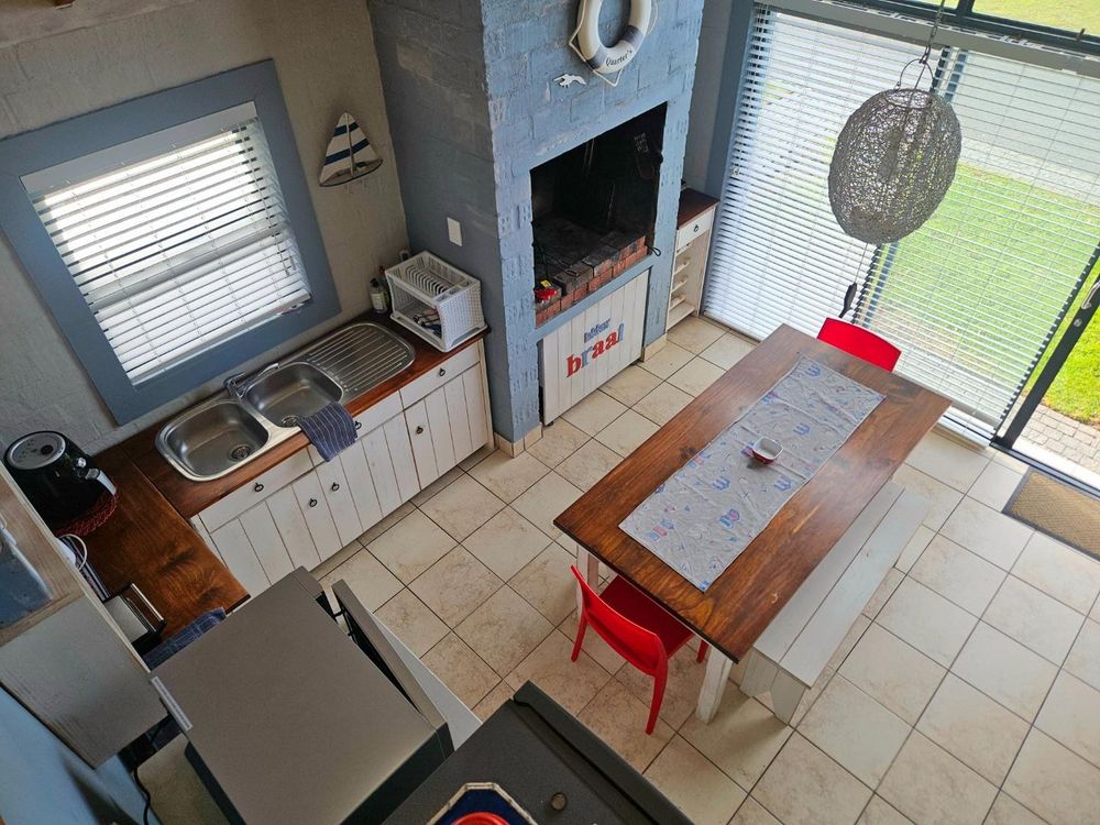 Lying within easy reach of the beach and communal playground, this fully tiled, nautically styled and casual holiday home includes a sheltered outdoor boma, shower, sink and washing line for your private use. Leading indoors from the Boma, an open-plan living area and prettily appointed kitchen invite you to get into vacation mode around the built-in braai, before heading off to sleep in one of two spacious bedrooms, of which one is en-suite. Completing the interior is an additional bathroom and a handy loft area, accessible by ladder, for storage or even as extra sleeping space. If it's a bright, low maintenance, holiday home that you're looking for, this is it, so get in touch today and let's schedule a private viewing.