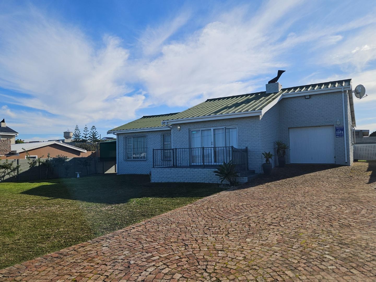 The extra-large single garage features a wash trough, washing machine, and storage space, making chores effortless. Modern finishes with aluminium windows and concrete floors creates that holiday home feeling .It also boasts a well maintained garden with a rainwater tank, irrigation system, vibacrete walls, and an enclosed outdoor braai area—perfect for long summer evenings.