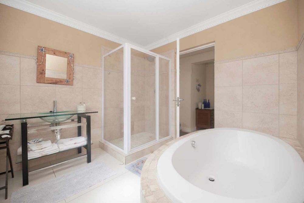 Upstairs, you’ll find two additional bedrooms, also with built-in cupboards, along with a full bathroom. A spacious family room creates the perfect spot for relaxed living, while the separate braai room with a built-in braai opens onto a balcony where you can soak up beautiful sea views—ideal for entertaining or unwinding at the end of the day.