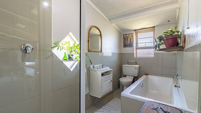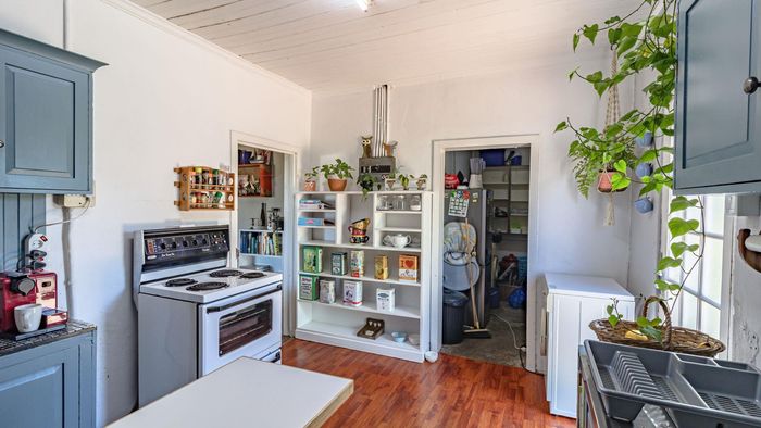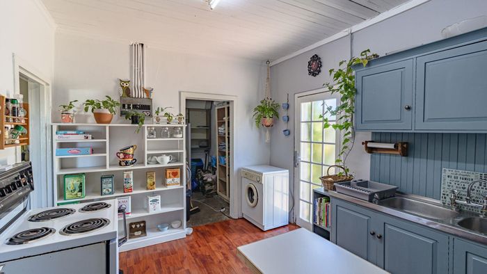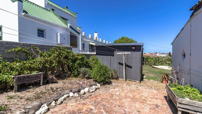 Relaxed coastal living in old Gansbaai with harbour and ocean views, generous garden and bougainvillea, shady stoep and braai-room balcony; sash-window charm, three bedrooms, one bathroom.