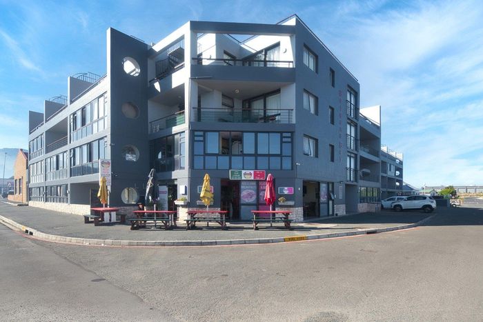 Enjoy laid-back seaside living in Gansbaai's Baleana Bay, steps from eateries and the shore, with a private balcony offering sea and mountain views; two beds, two baths, underground parking.