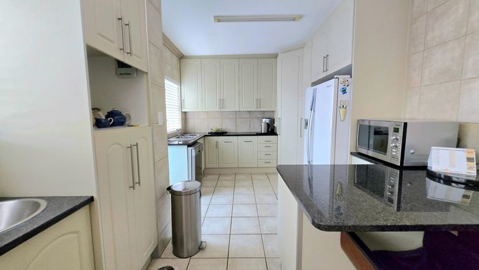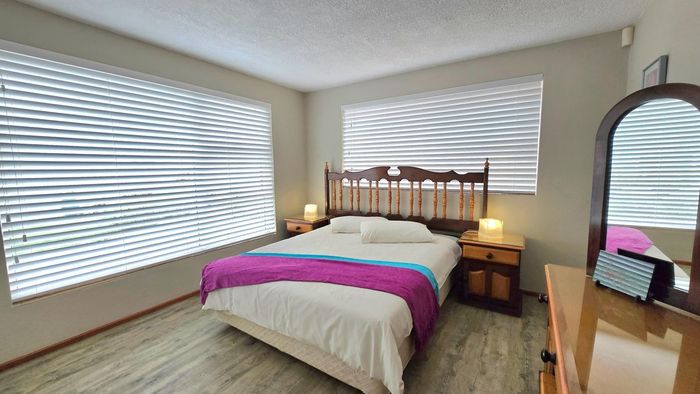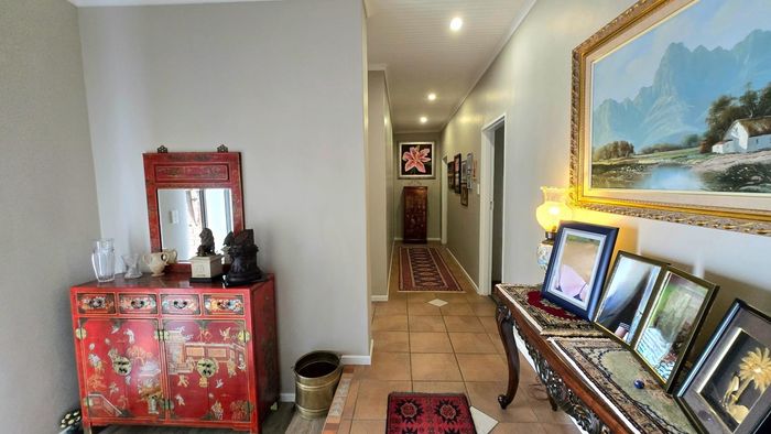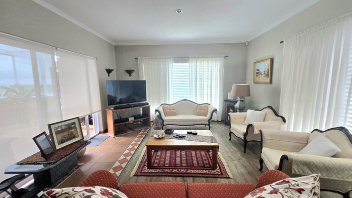 Perfect family or holiday retreat in Kleinbaai with golf course, sea and mountain views; open-plan living flows to enclosed balcony with built-in braai. Four bedrooms, three bathrooms, triple garage.