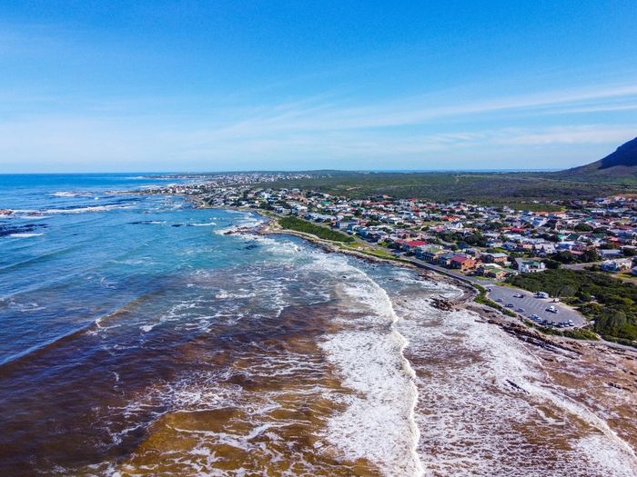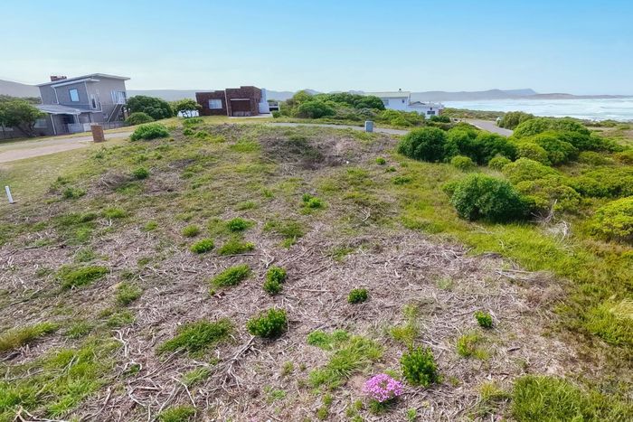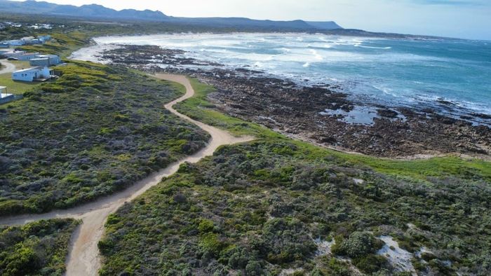Coastal lifestyle opportunity in De Kelders—an elevated corner 520 m² plot overlooking Walker Bay, steps from the shoreline, whale-watching points, hiking trails and a swimming beach.