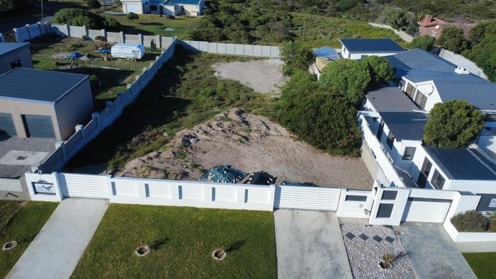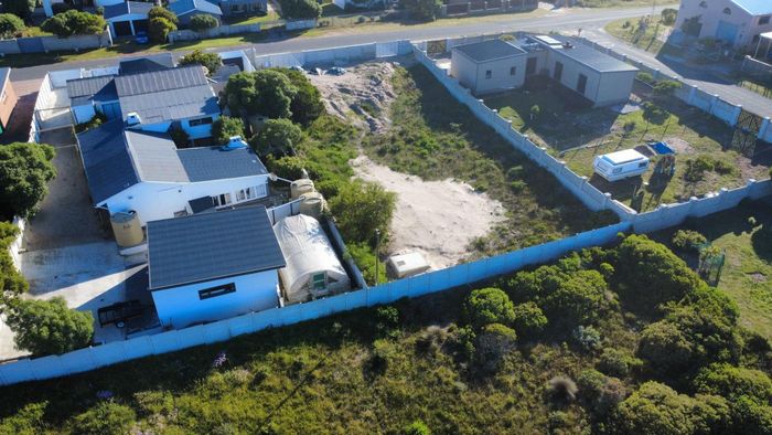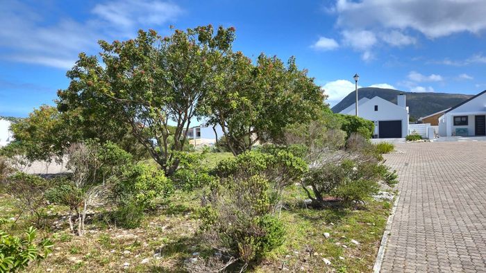 Coastal lifestyle one street from the shore in Perlemoenbaai — whale-watching, abundant fynbos and Walker Bay views; 852m² stand fenced on three sides, ready for your new home.
