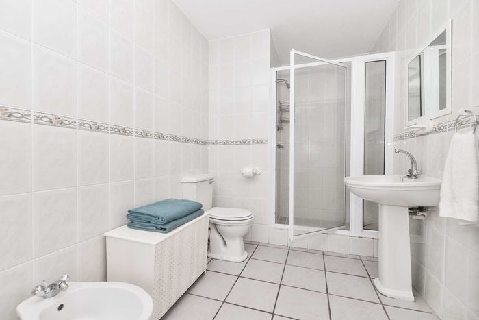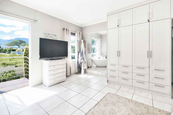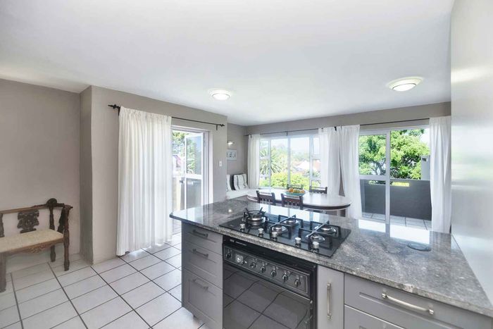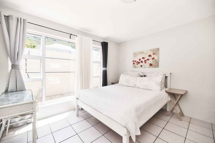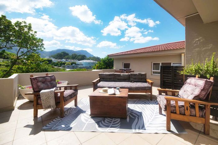 Coastal living in Mariners Village Estate in Westcliff, Hermanus — enjoy sweeping mountain and sea views from an entertainer's balcony with built-in braai, sunlit garden, two bedrooms, three baths.