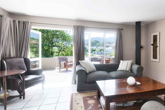 Coastal village living steps from the ocean in Vermont, Hermanus, with mountain and greenbelt views, featuring a sunlit double-volume lounge, deck and versatile outside room.