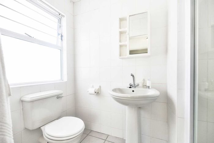 Relax in coastal Vermont living with sweeping sea and mountain views just steps from Jan Rabie tidal pool; rooftop deck, sheltered courtyard with built-in braai, four beds, three baths.